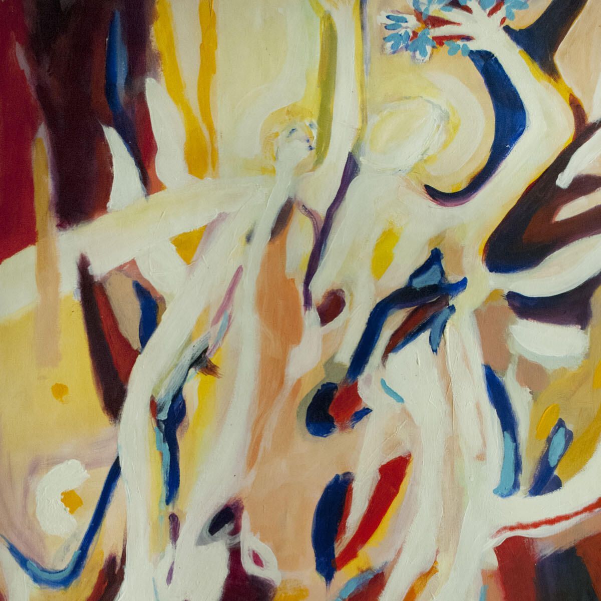 Tears in borders, repaired by artist with scrap paper and acrylic medium. Smudges and abrasions in borders. Pinholes in corners of image. Black flakes adhered to image throughout. Columbus Ave. series.Dimensions