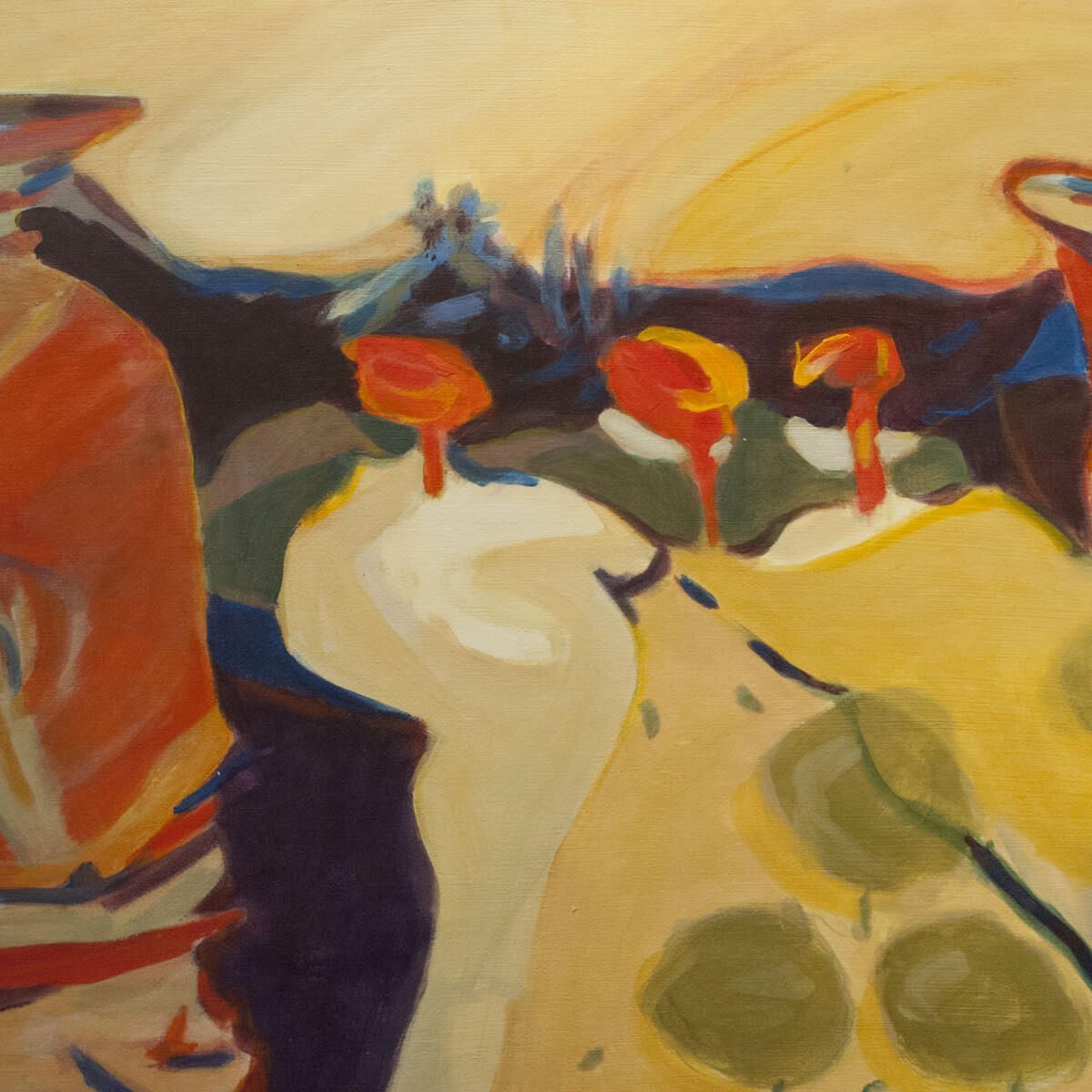 Pinholes in corners. Image in good condition. Landscape. Viterbo series. Yellow, Red, Blue, trees, plants, landscapeDimensions