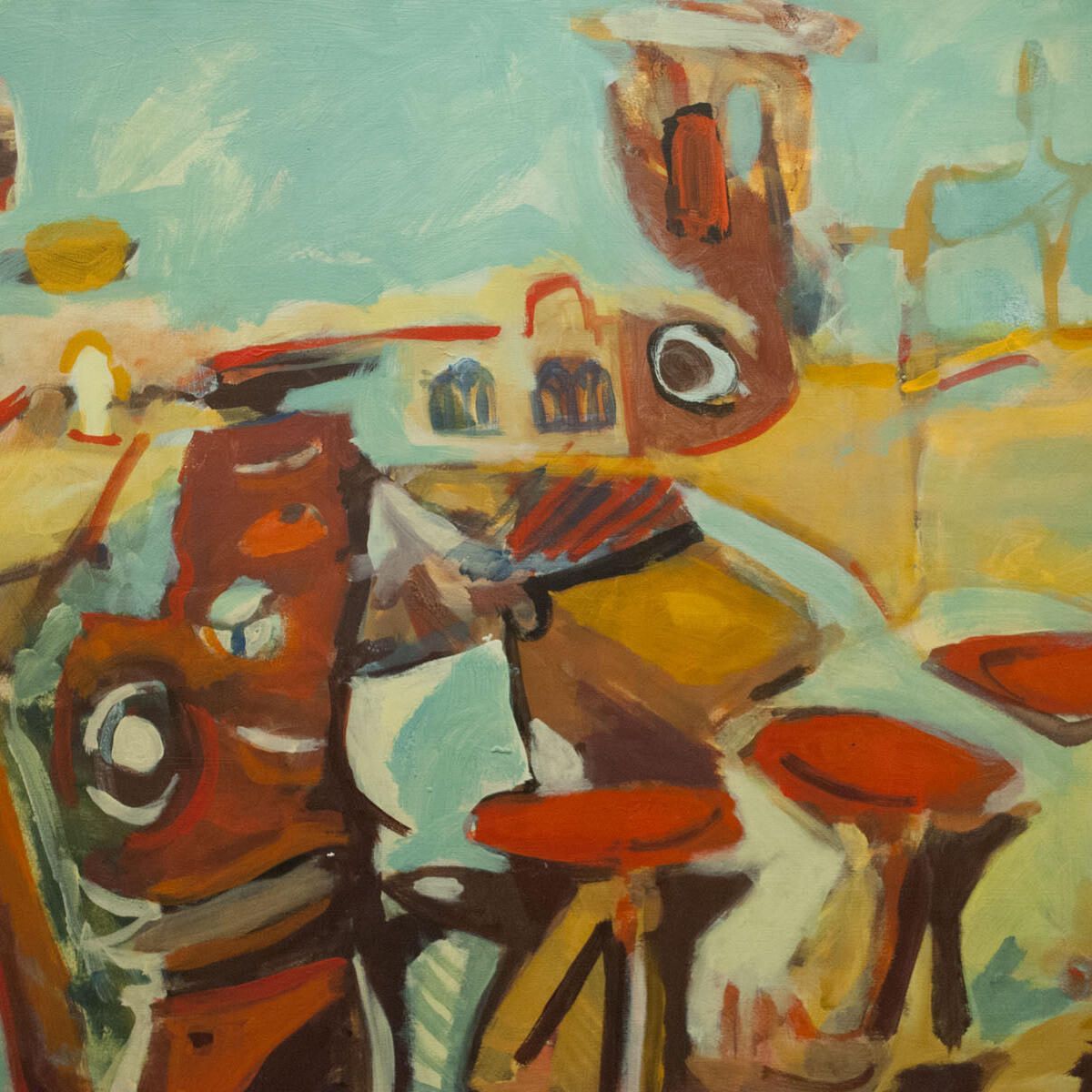 Abrasions, creases, pencil marks in border. Pinholes in corners, and corners of image. Paint chips adhered throughout. Cityscape. Viterbo series. Italy, city, blue, red, yellowDimensions