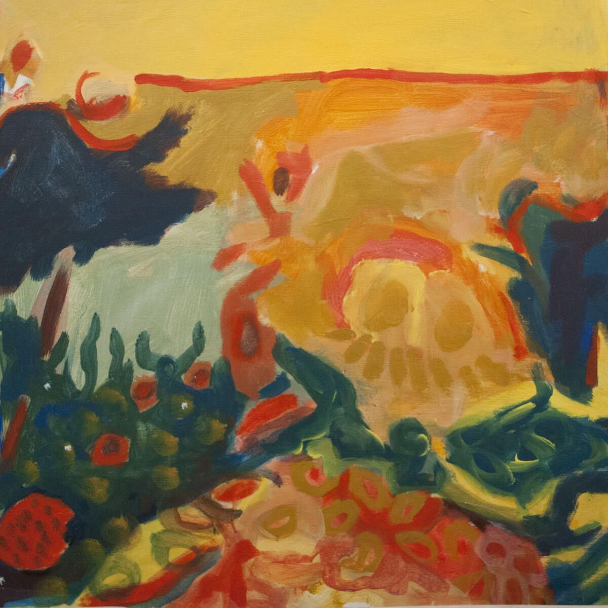 Paint transfer, lower-left quadrant. Borders with minor smudges. Pinholes in corners of image. Landscape. Viterbo series.Dimensions