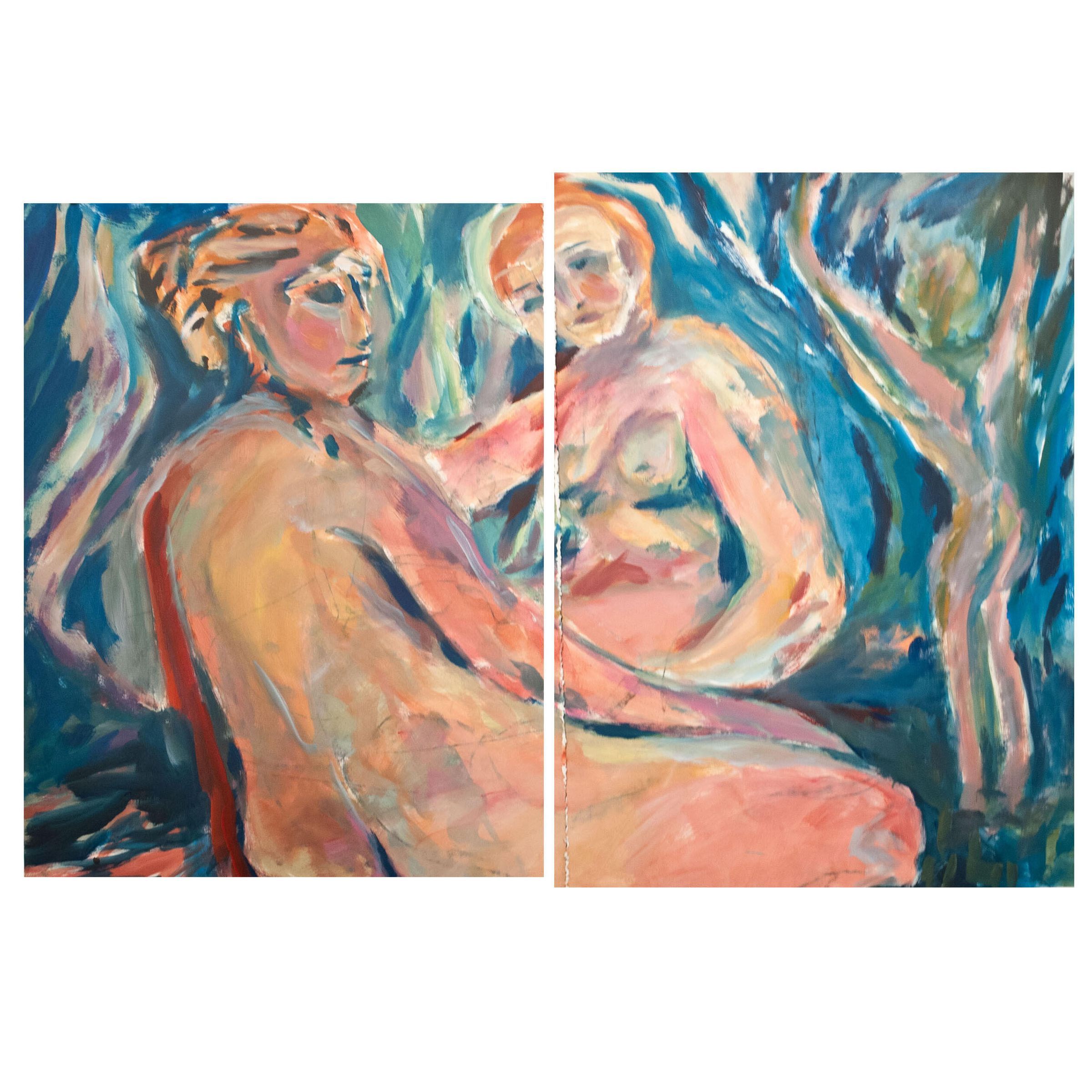 Image covers two sheets. Pinholes in corners of each. Minor smudging in borders. Image in otherwise good condition. Two nude female figures.Artwork Details