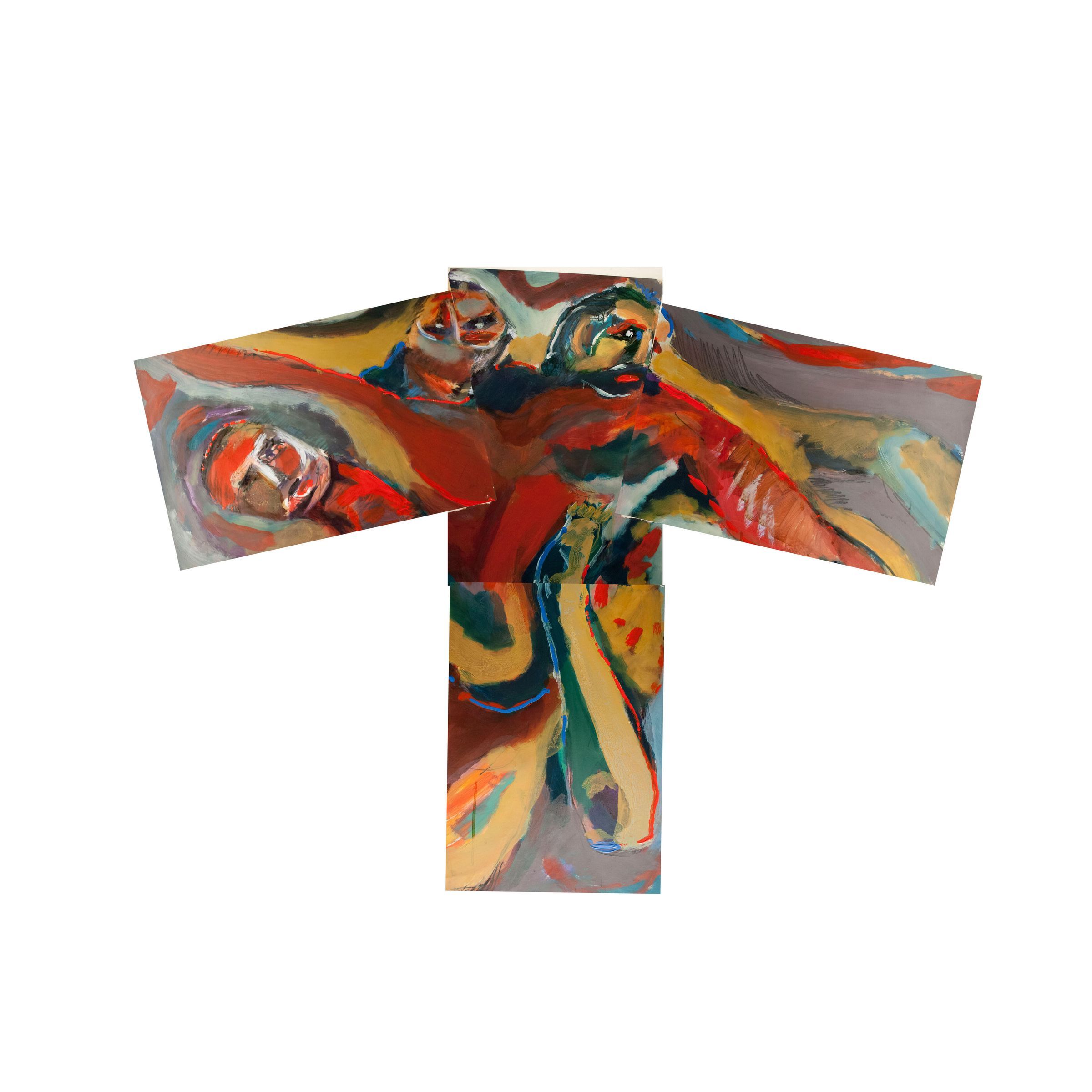 Image covers four sheets, T-shaped. Three figures Pinholes in corners, .b has torn corner. In otherwise good condition.Dimensions