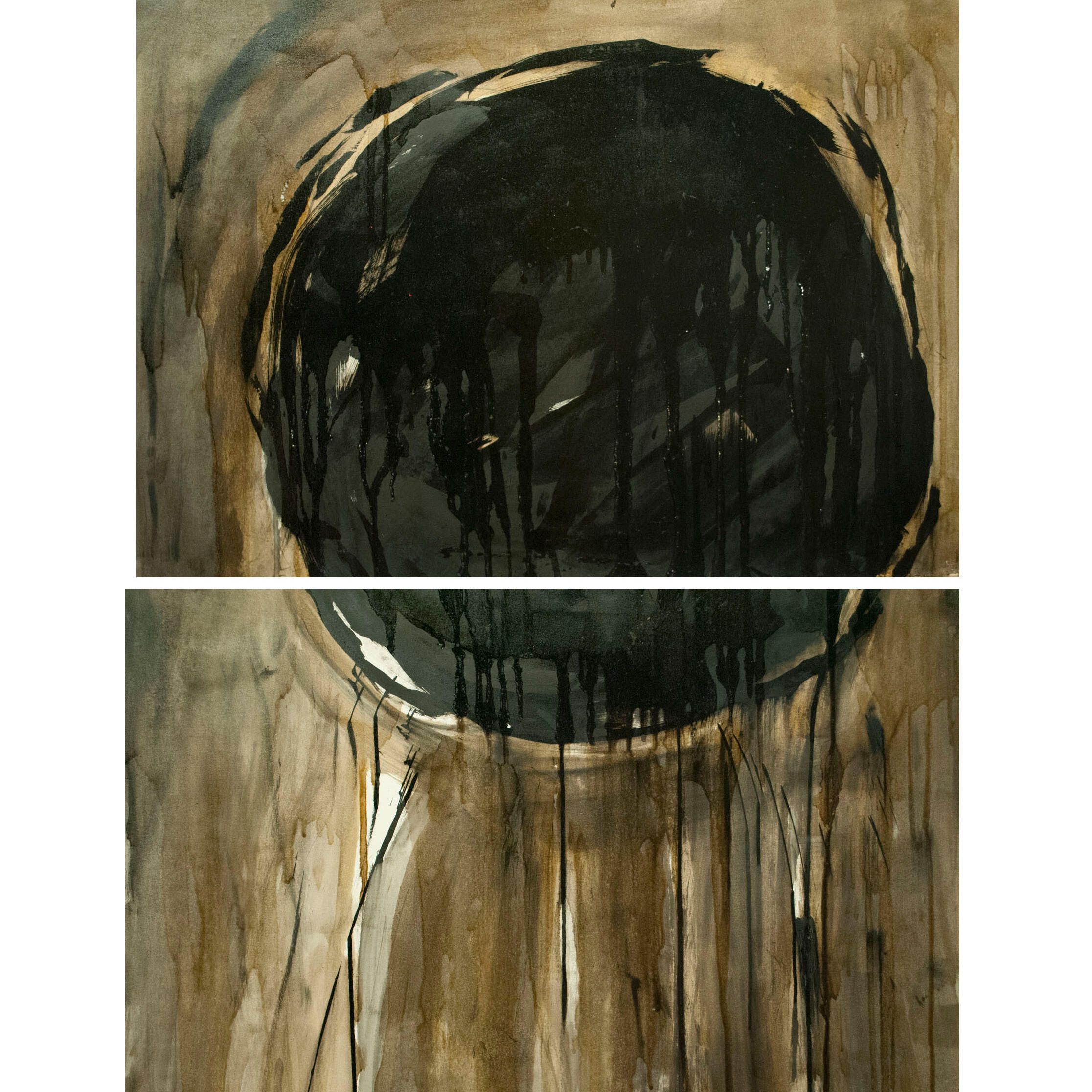 Image comprised of three sheets of paper. Paper adhered to high points of image, red pigment transfer in .a. Pinholes in corners. Overall dimensions: 66 in x 30 in. Abstract composition.Artwork Details