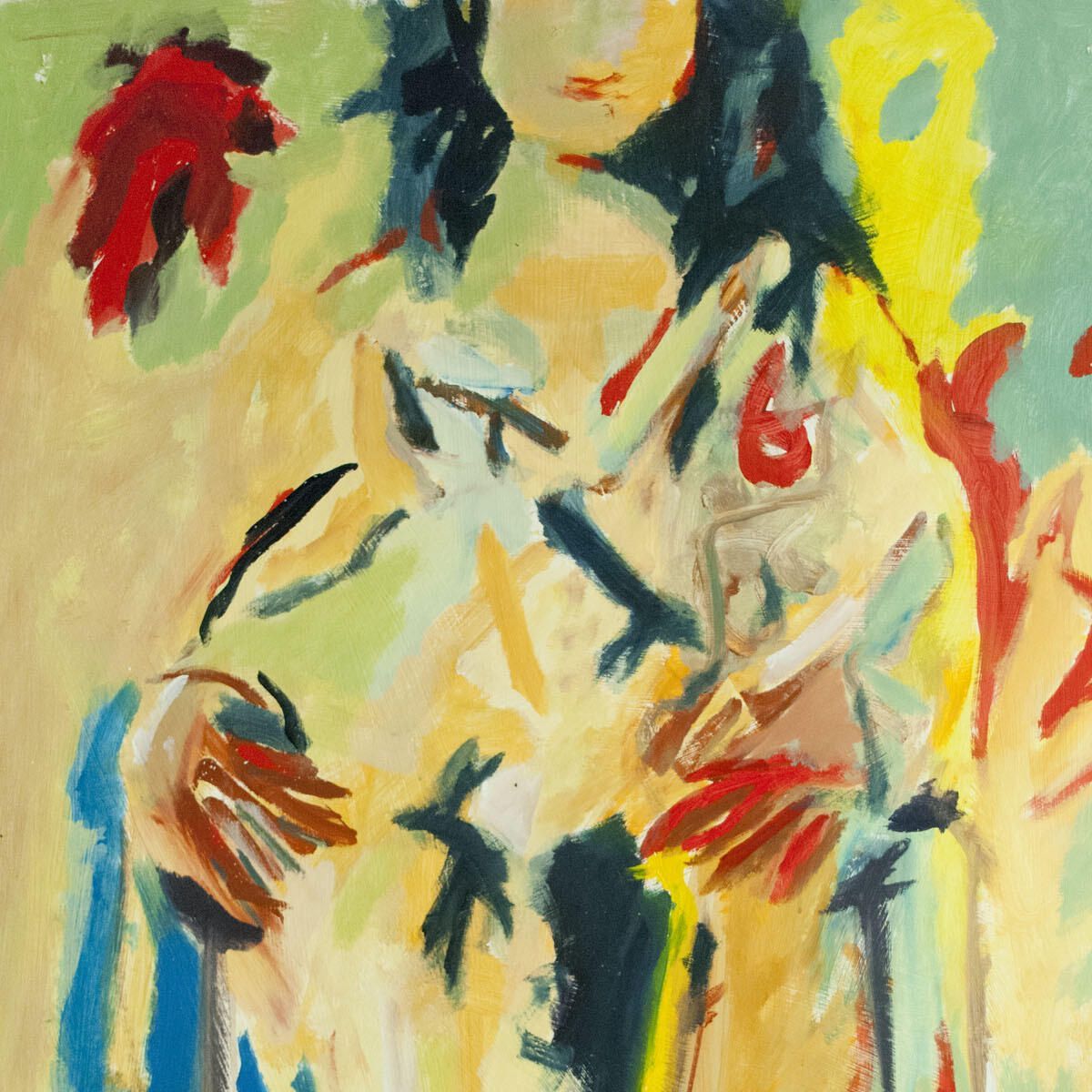 Multiple pinholes in corners, bleed image. Paint transfer prevalent at bottom. Few points of detritus adhered to image. Lower-right corner reinforced with scrap paper. Female nude figure.Location