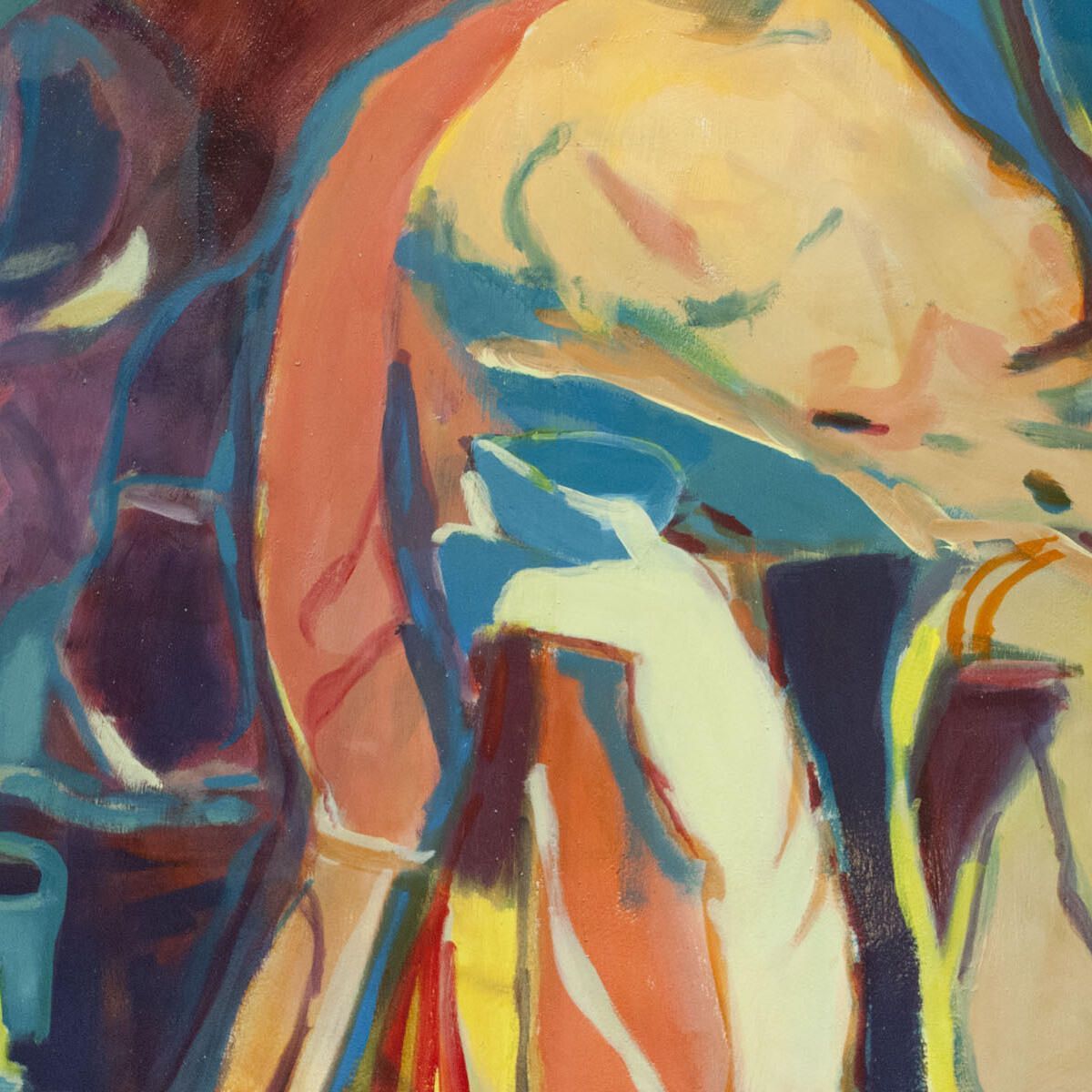 Two sheets adhered together to form larger image area. Abrasions, smudges in borders. Pinholes in each corner. Image in good condition. Female figure.Dimensions