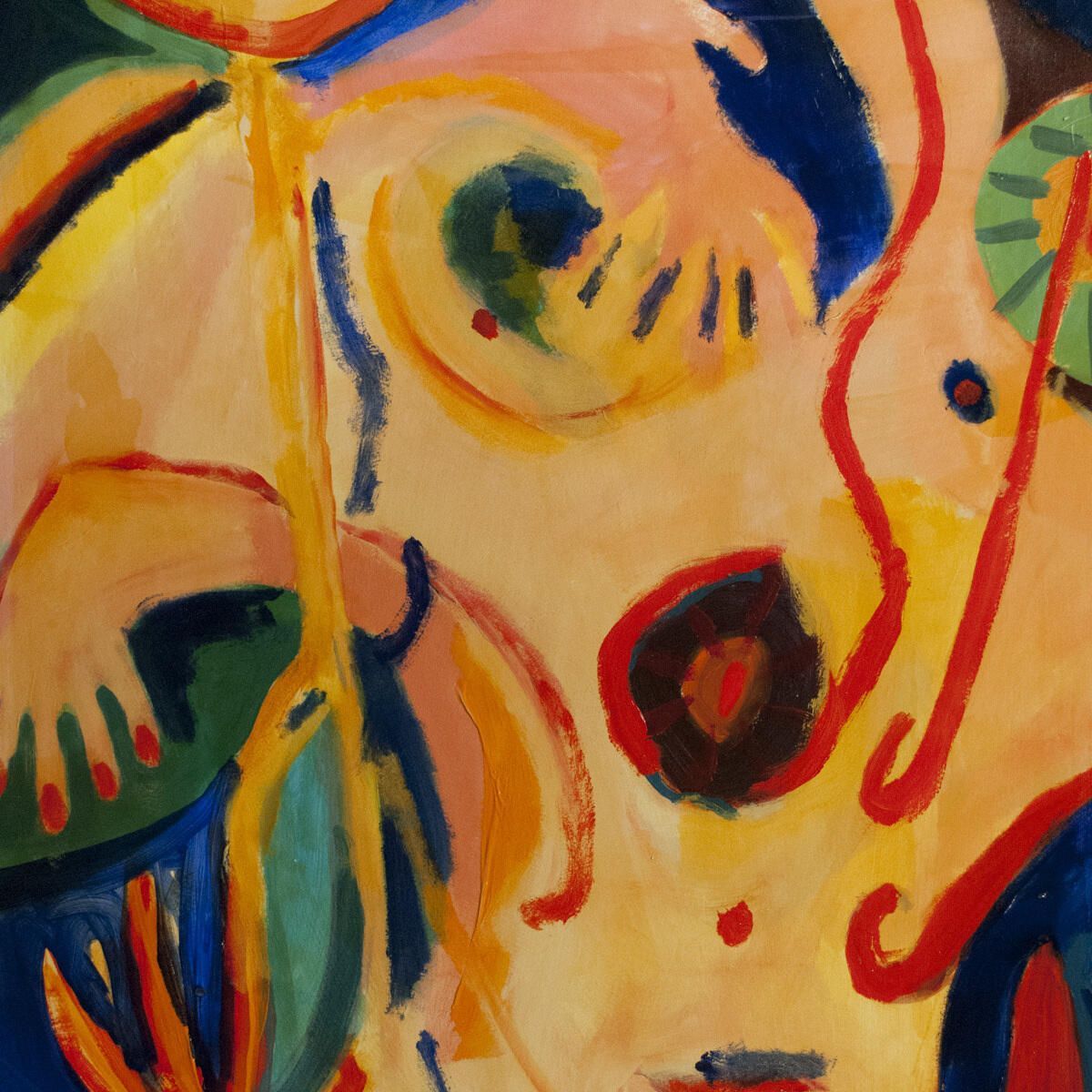 Smudges, stains in borders. Image in good condition. Pinholes in corners, tears in the upper-right corner. Abstract figure with flowers.Dimensions
