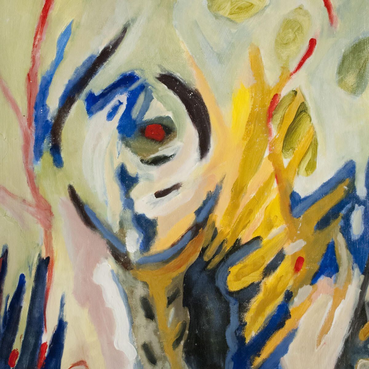Grass loosely adhered to image. Points of paint transfer, pinholes in corners of image. Smudges, abrasions in borders. Landscape. Columbus Ave. series.Location