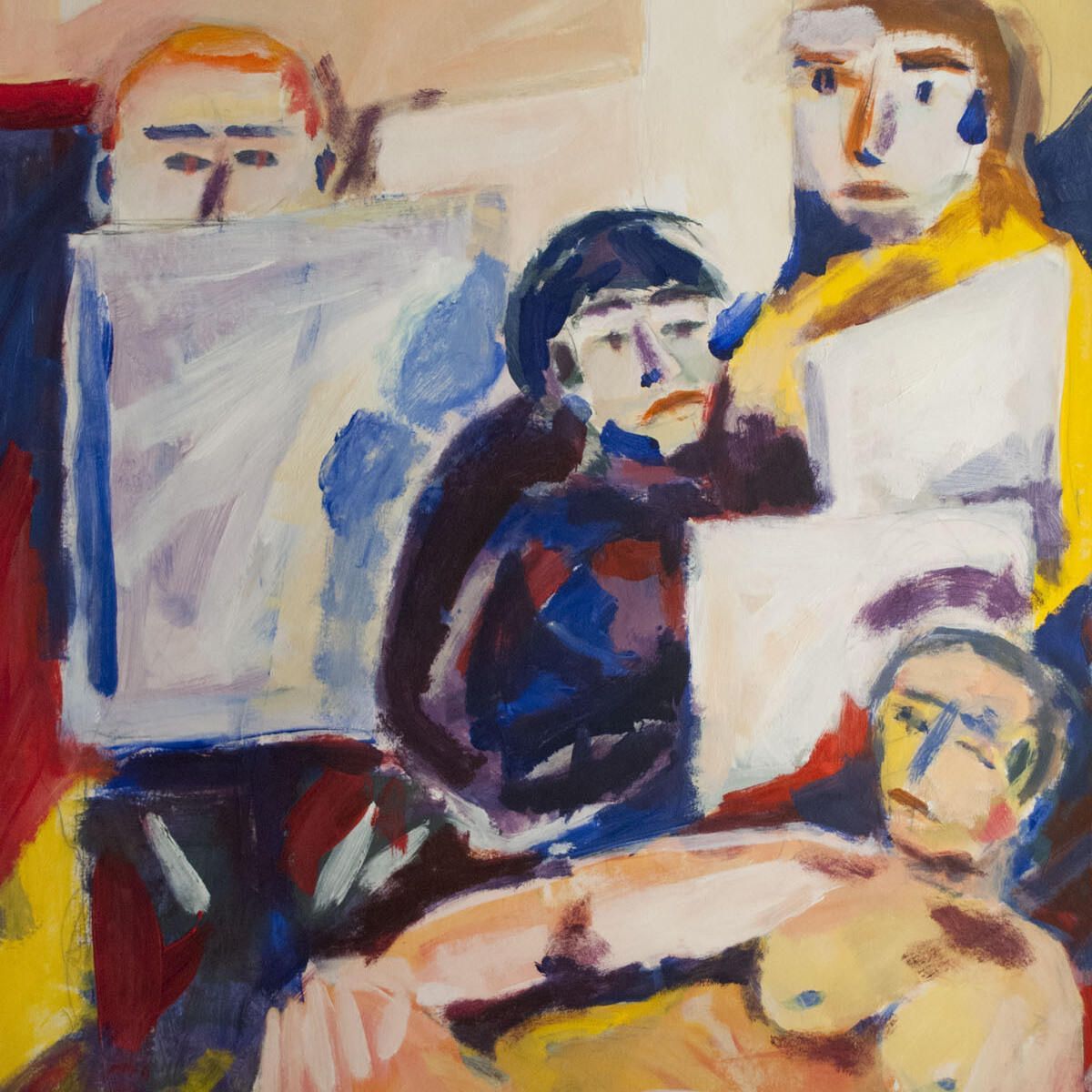Pinholes in top corners of image. Tear bottom border. Minor smudging in borders. Figure - nude model with painting students.Artwork Details