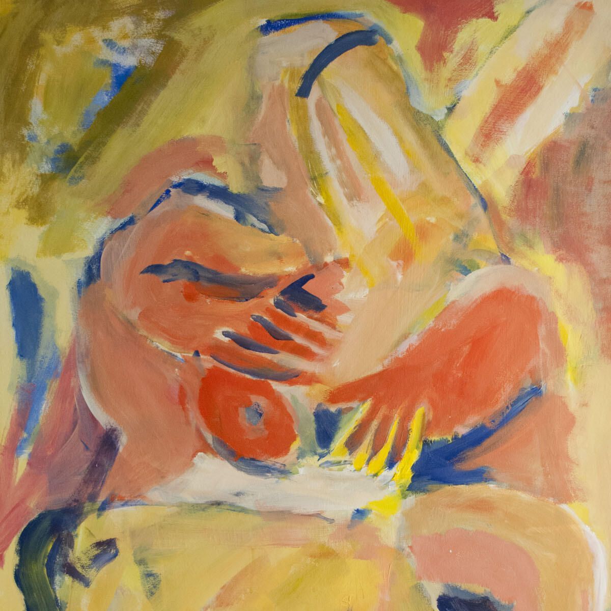 Bleed image, pinholes in corners. Some abrading of image, paint transfer throughout. Female figure.Location