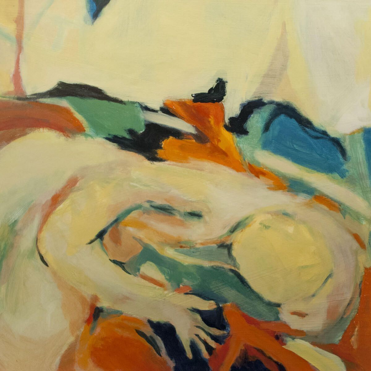 Bleed image, multiple pinholes in corners, detritus adhered to image, especially in upper-left corner. Sleeping figure? Montserrat series.Dimensions