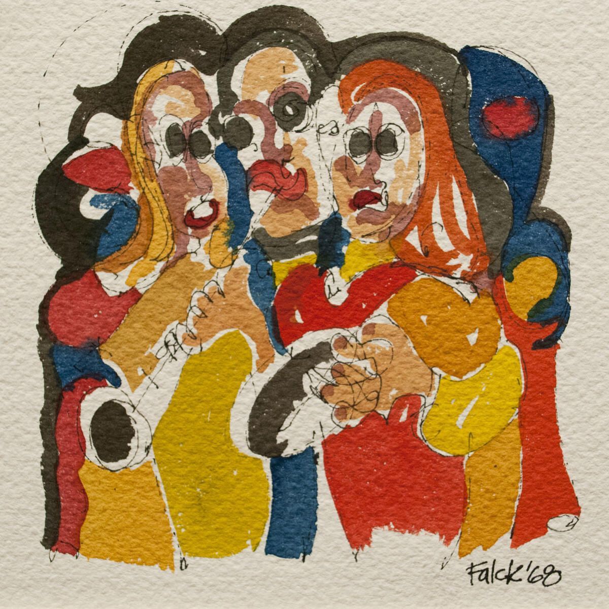 Poorly matted with masking tape. Some light smudging in image. Three musicians.Artwork Details