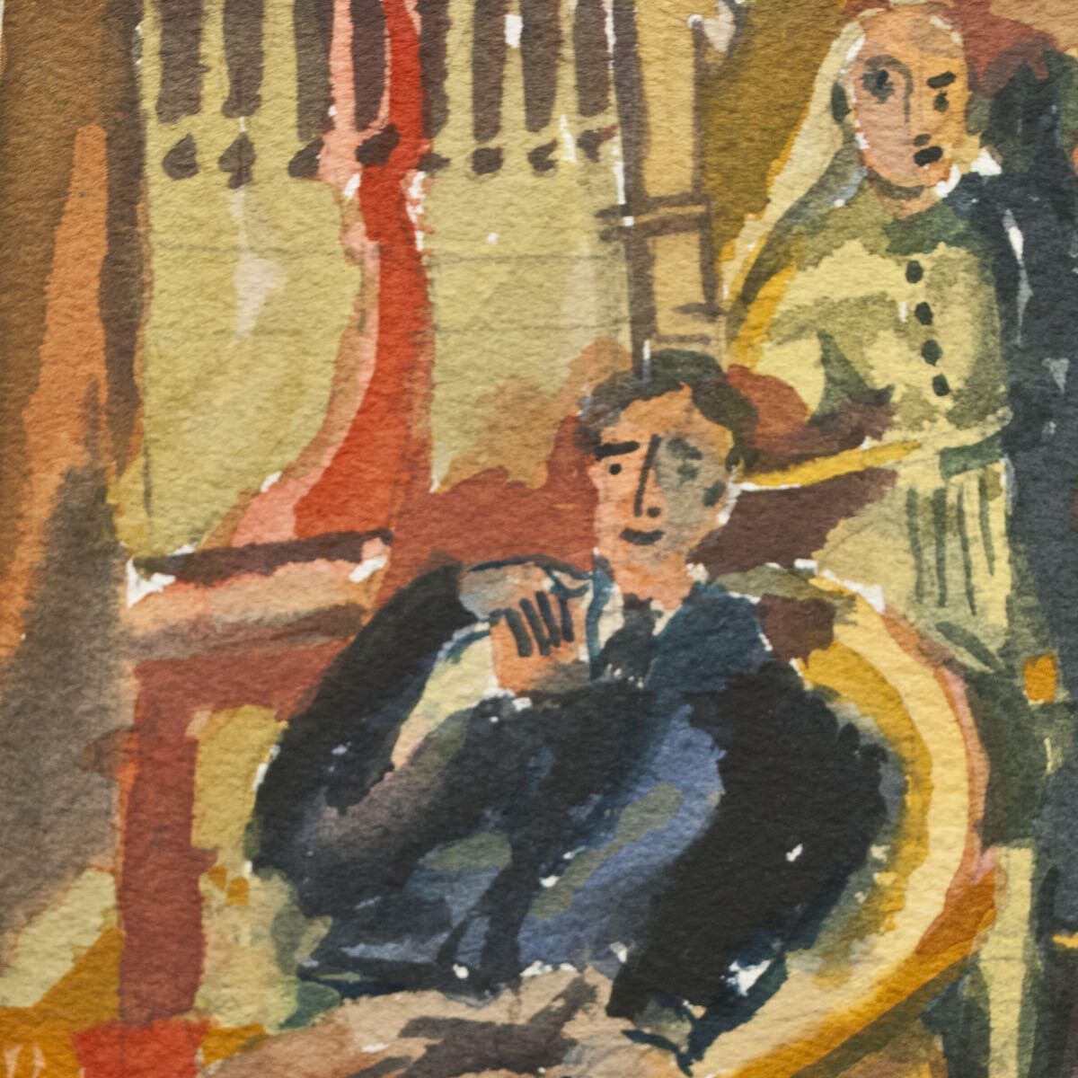 Poorly matted with tape. Image in good condition. Two male figures.Artwork Details