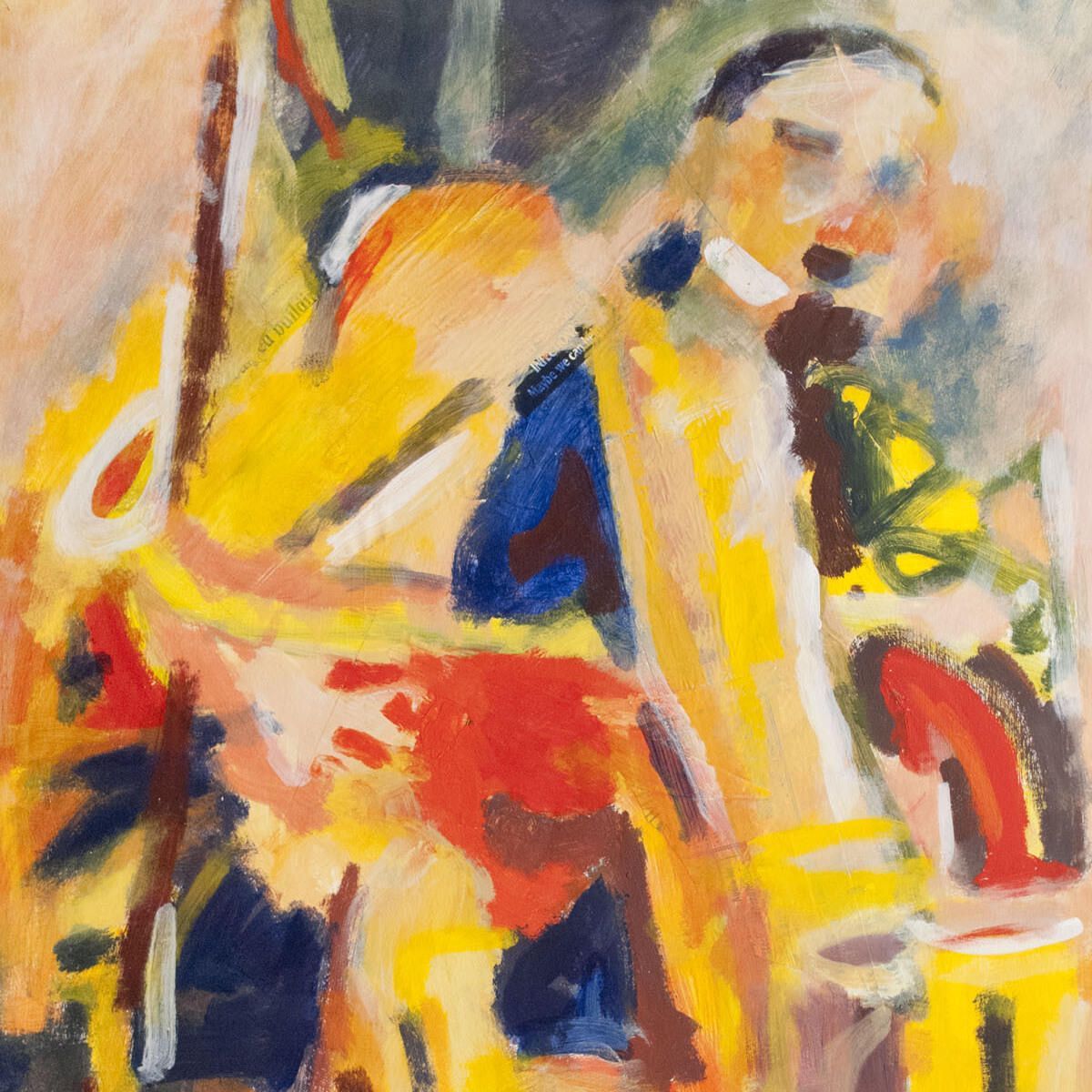 Pinholes in corners of image. Minor smudging in borders. Image good condition. Seated figure.Location