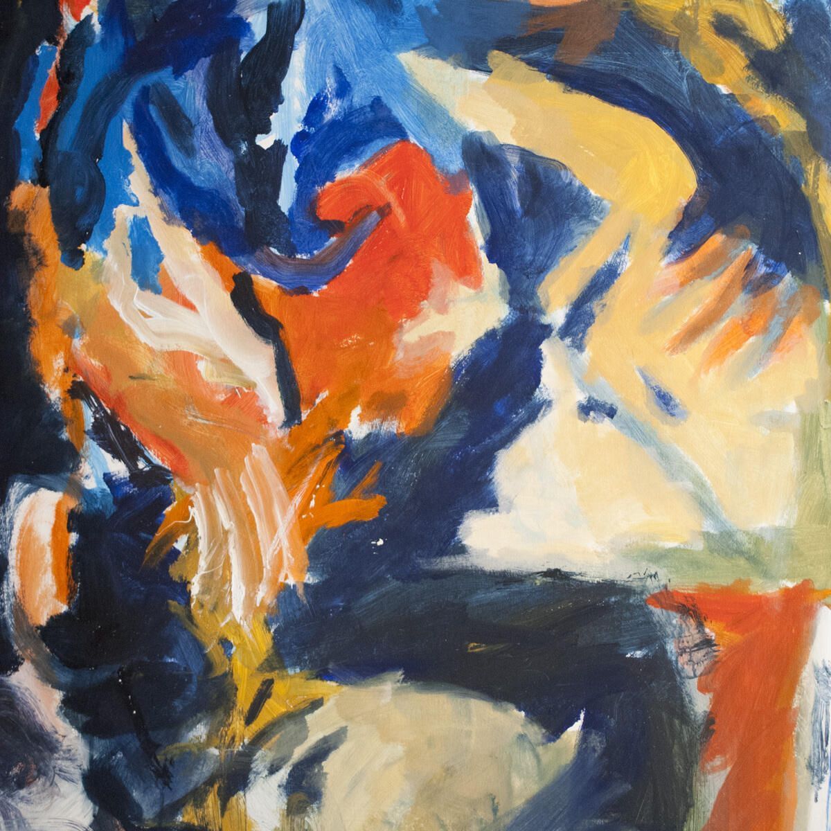 Multiple pinholes in each corner, bleed image. Small points of white pigment transferred throughout. Abstract seated figure. Montserrat series.Location