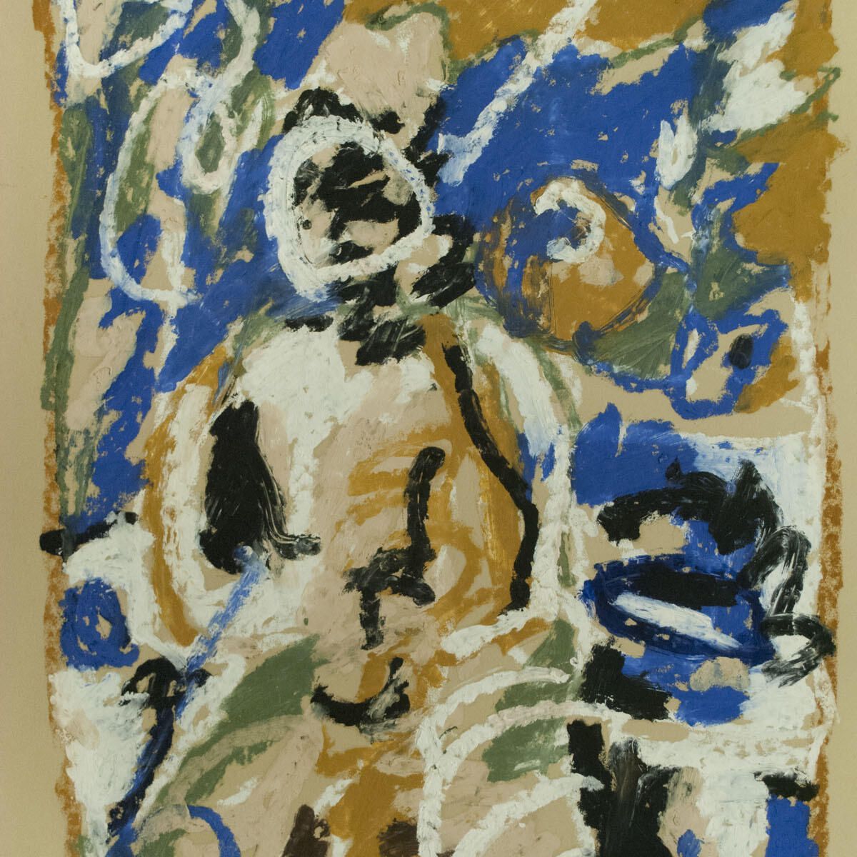 Some smudges in borders. Pinholes in corners. Image in good condition. Large paint chip attached to back of paper. Figure. Unknown series.Location