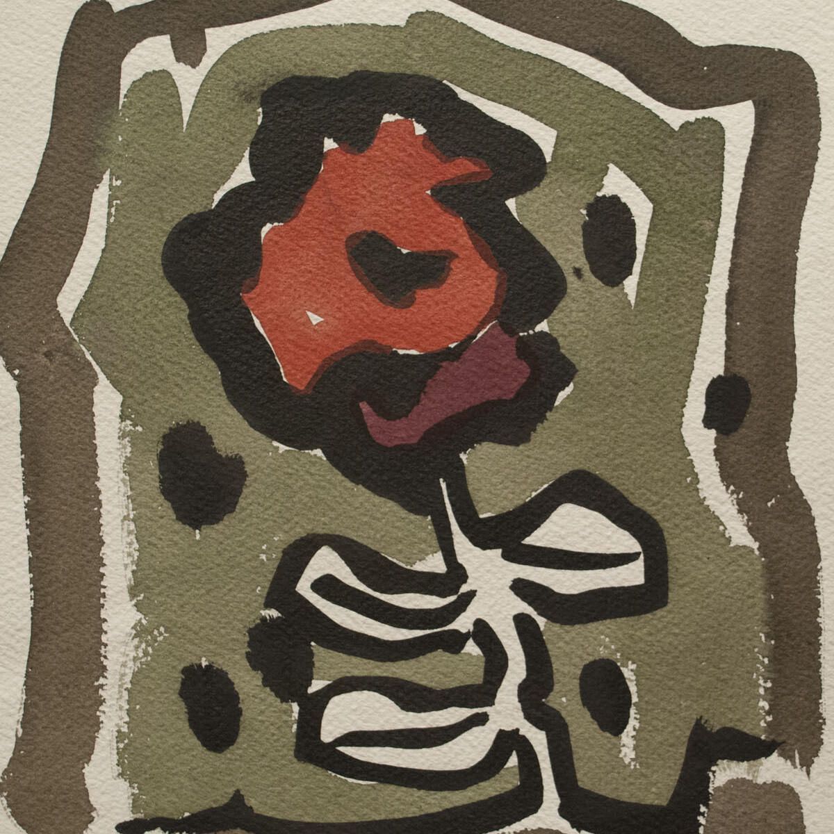 Irregularly cut paper. Some smudges in negative areas. In otherwise good condition. Still life of flower.Dimensions