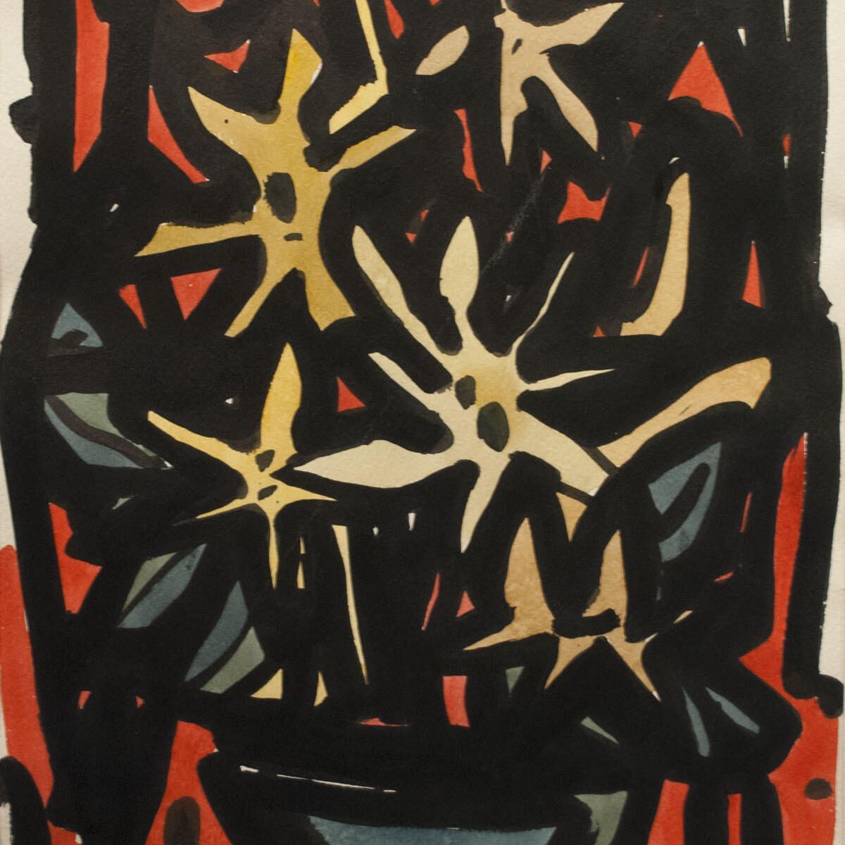 Poorly matted with masking tape. Image in good condition. Still life—flowers.Location