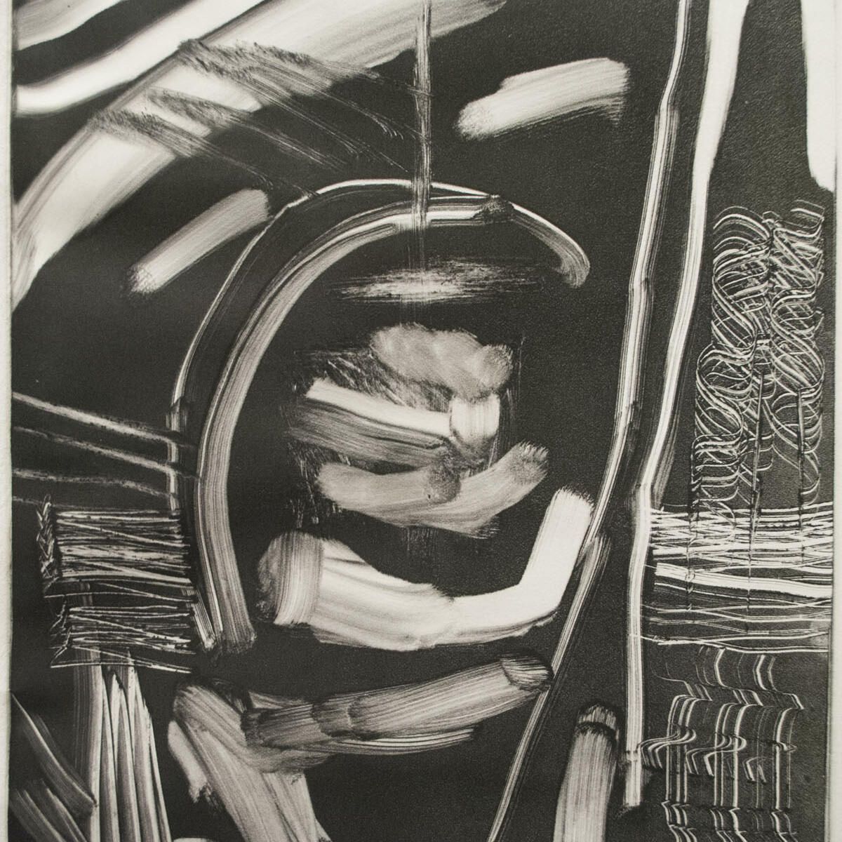 Taped into mat with masking tape. Tape beginning to discolor. Image in good condition Abstract composition.Artwork Details