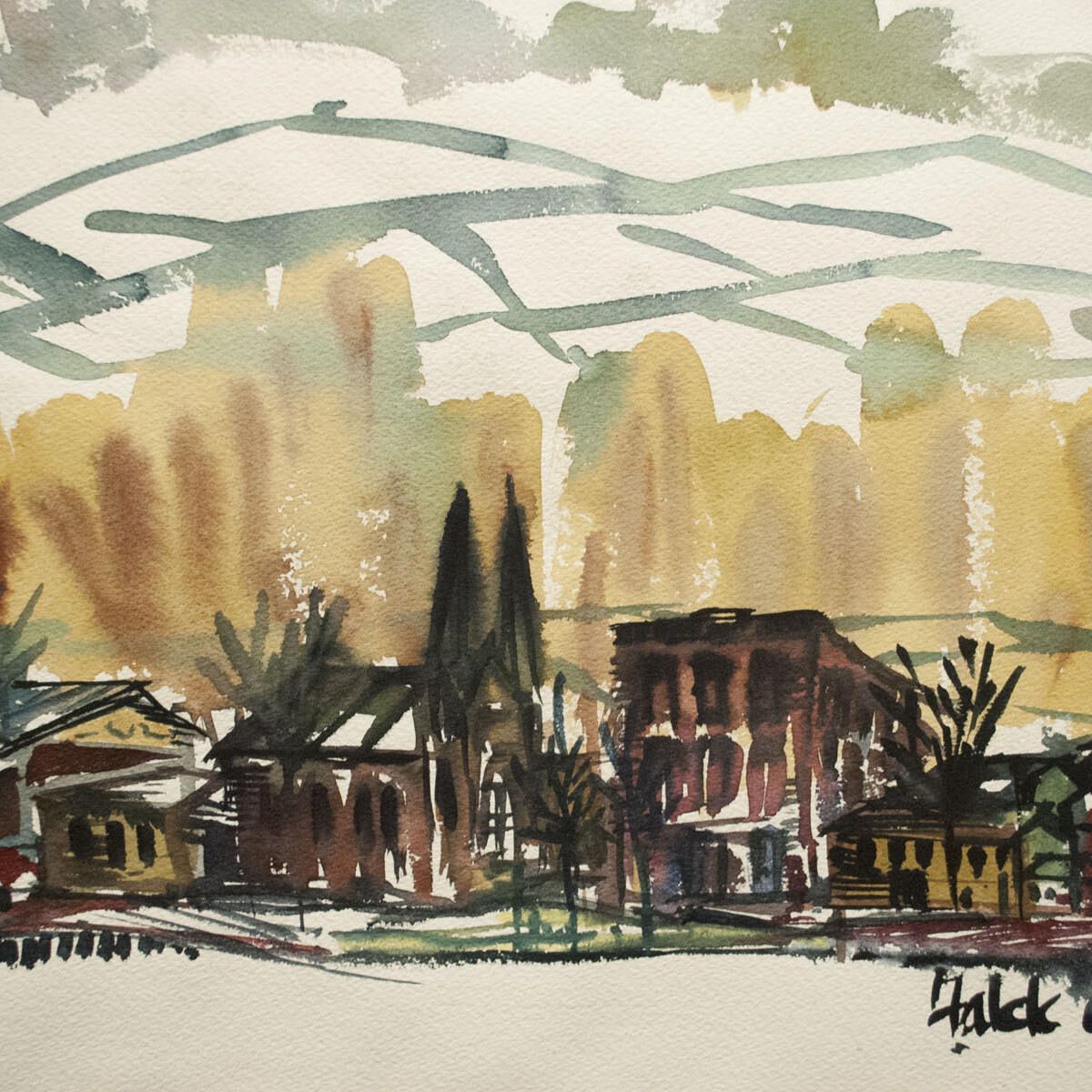 Foxing in image and light smudges. Poorly matted with masking tape. Landscape—Aspen?Location