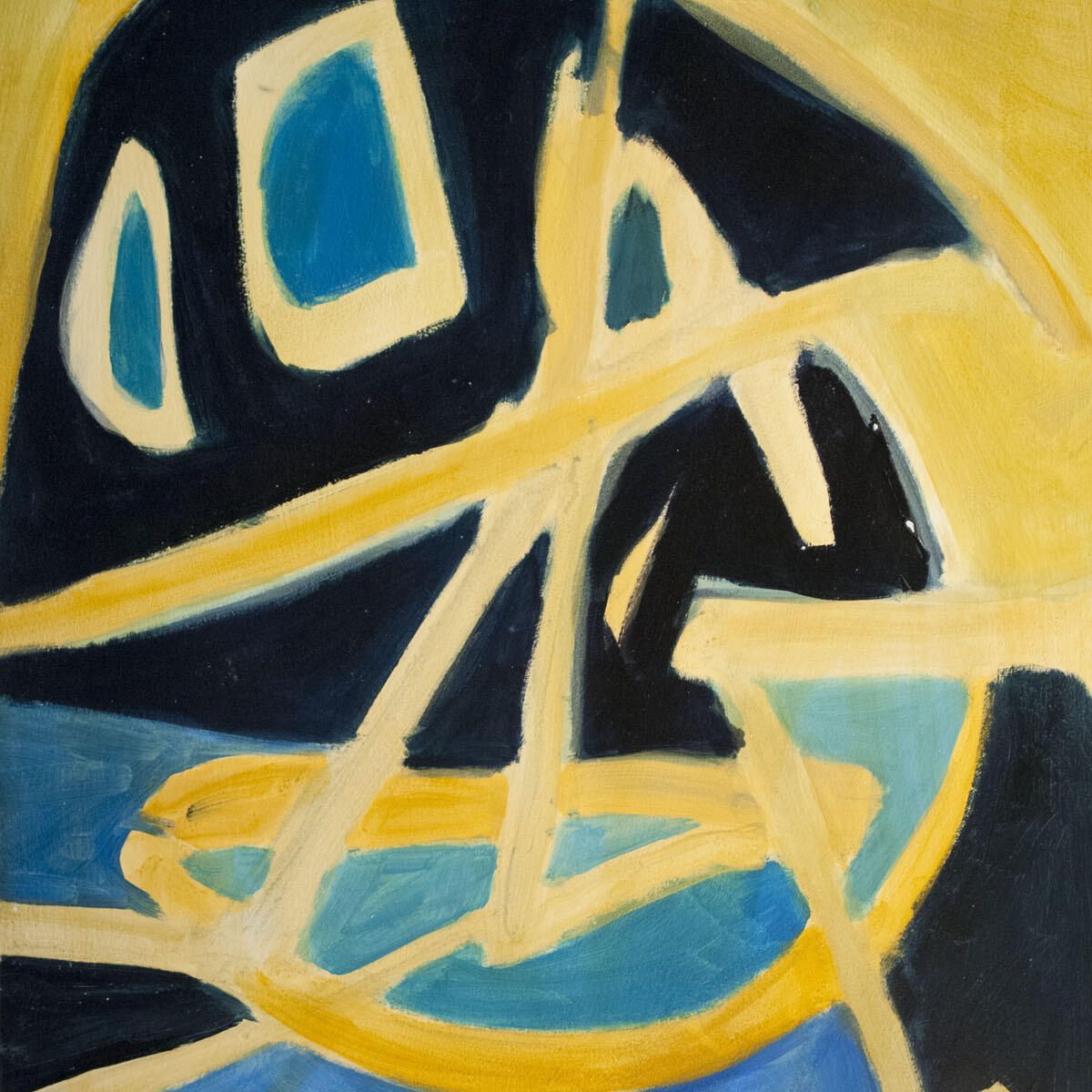 Abrasions, smudges in borners. Paper adhered to hgh points in image. Abstract, geometric forms. Munroe street series.Location