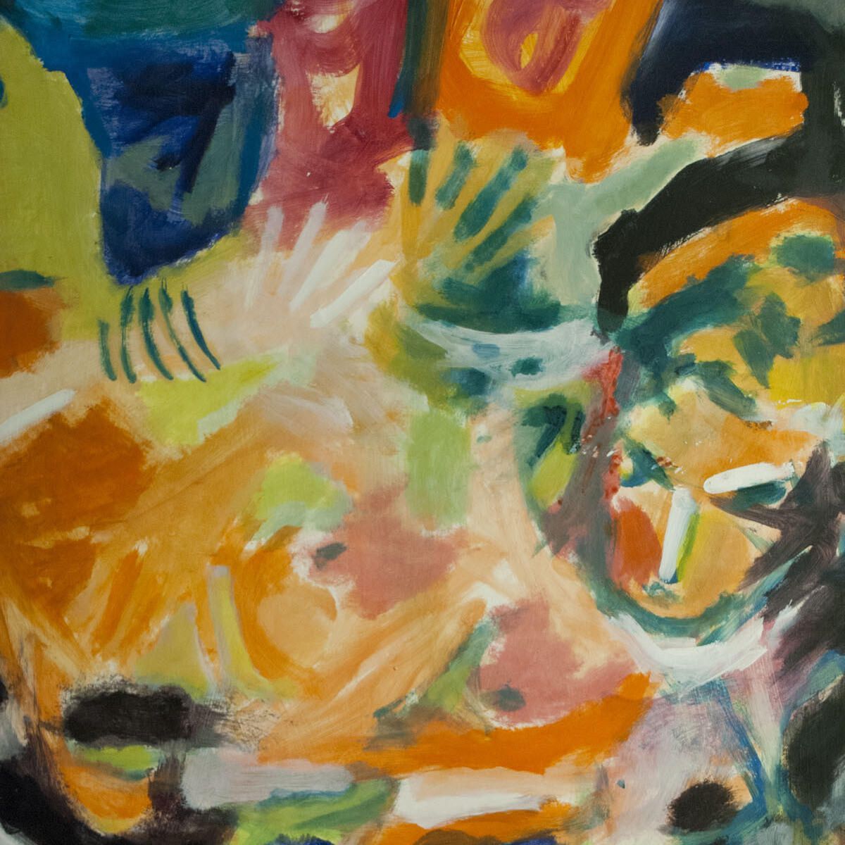 Multiple pinholes in corners. Areas of white pigment transfer throughout. Still life. Montserrat series.Location