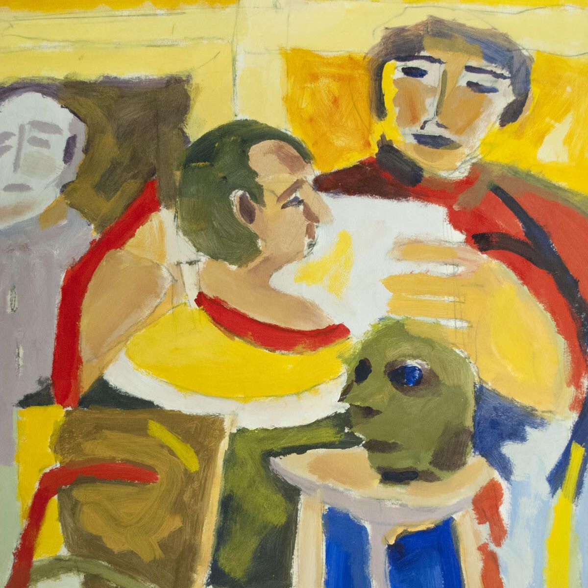 Tear in top border. In overall good condition. Sculptor in studio.Artwork Details