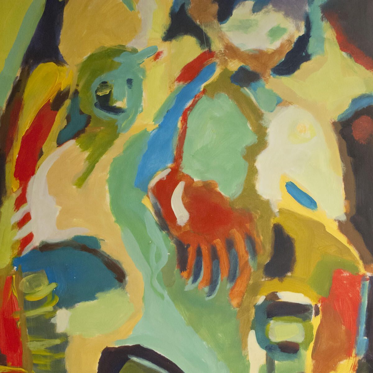 Abrasions in borders, multiple paint chips attached to image throughout. Figures.Location