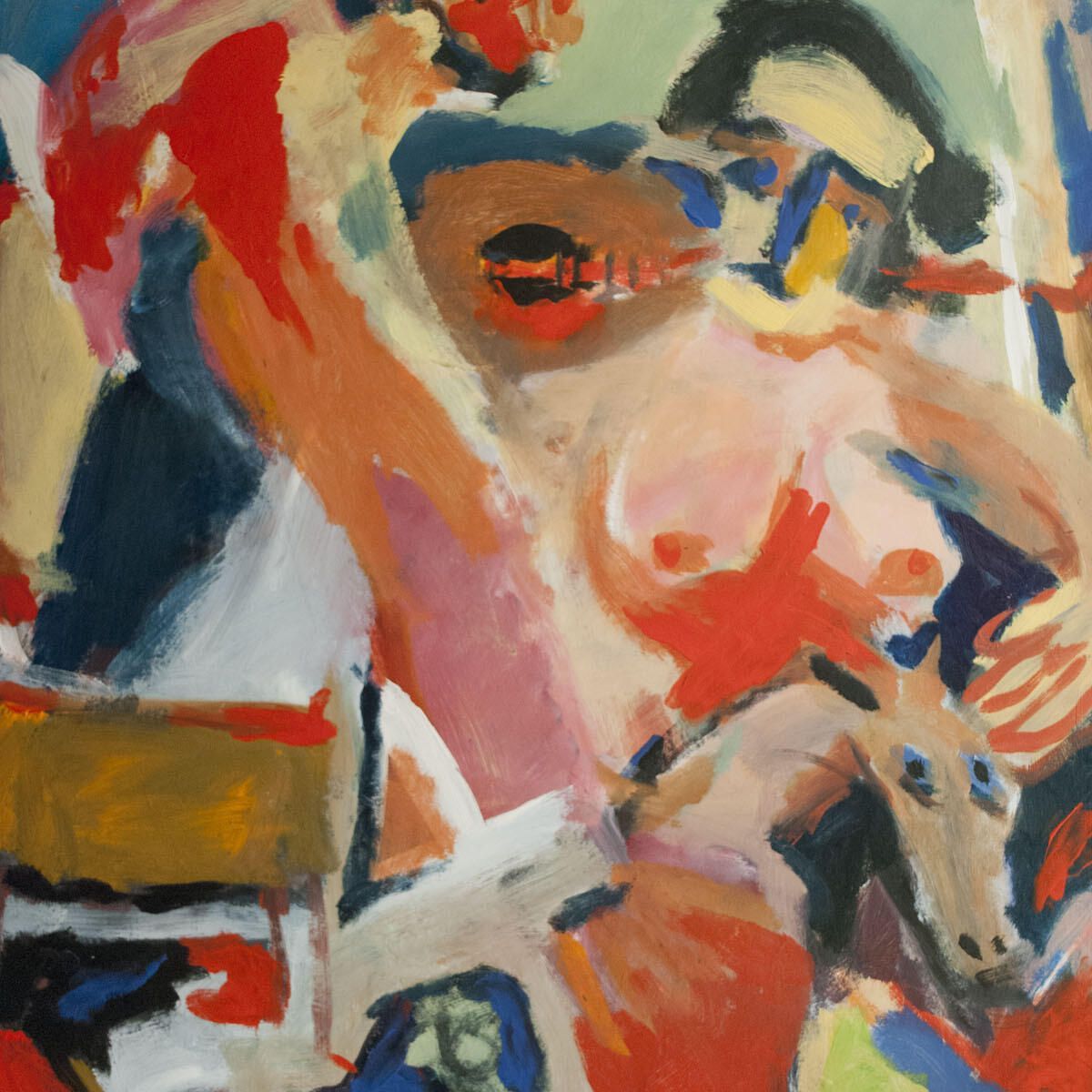 Pinholes in corners of image. Upper right corner torn. Paint chips adhered to image. Two figures. Montserrat series.Location
