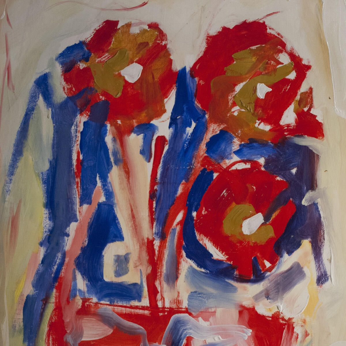 Points of paint and paper transferred onto the surface if image throughout. Abrasions, smudges in borders. Flowers - still life.Location