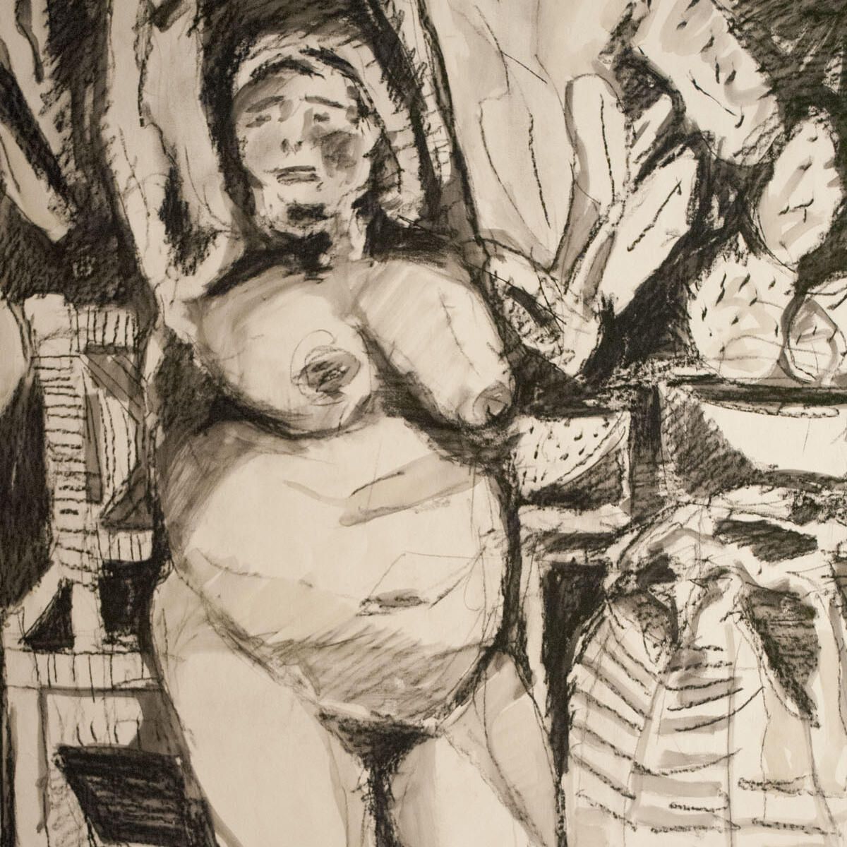 Upper-left and right corners creased, smudges in borders. Image in good condition. Female standing figure. San Miguel series.Dimensions