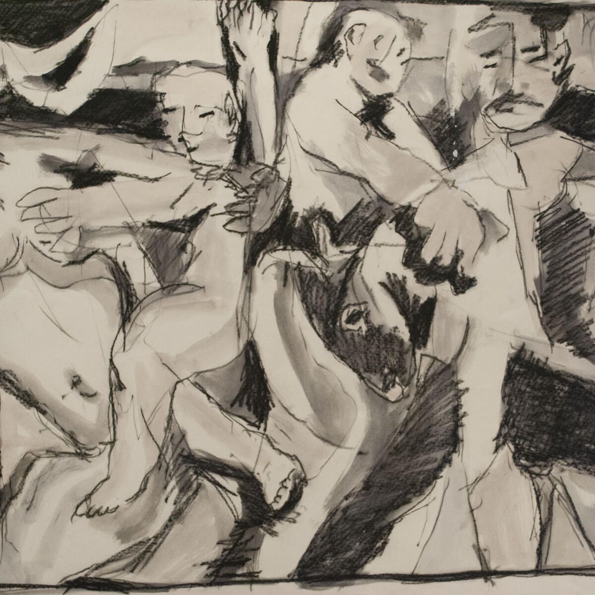 White paint transferred in image. Smudges, tears, pencil marks in borders. Image in otherwise good condition. Family portrait. San Miguel series.Location