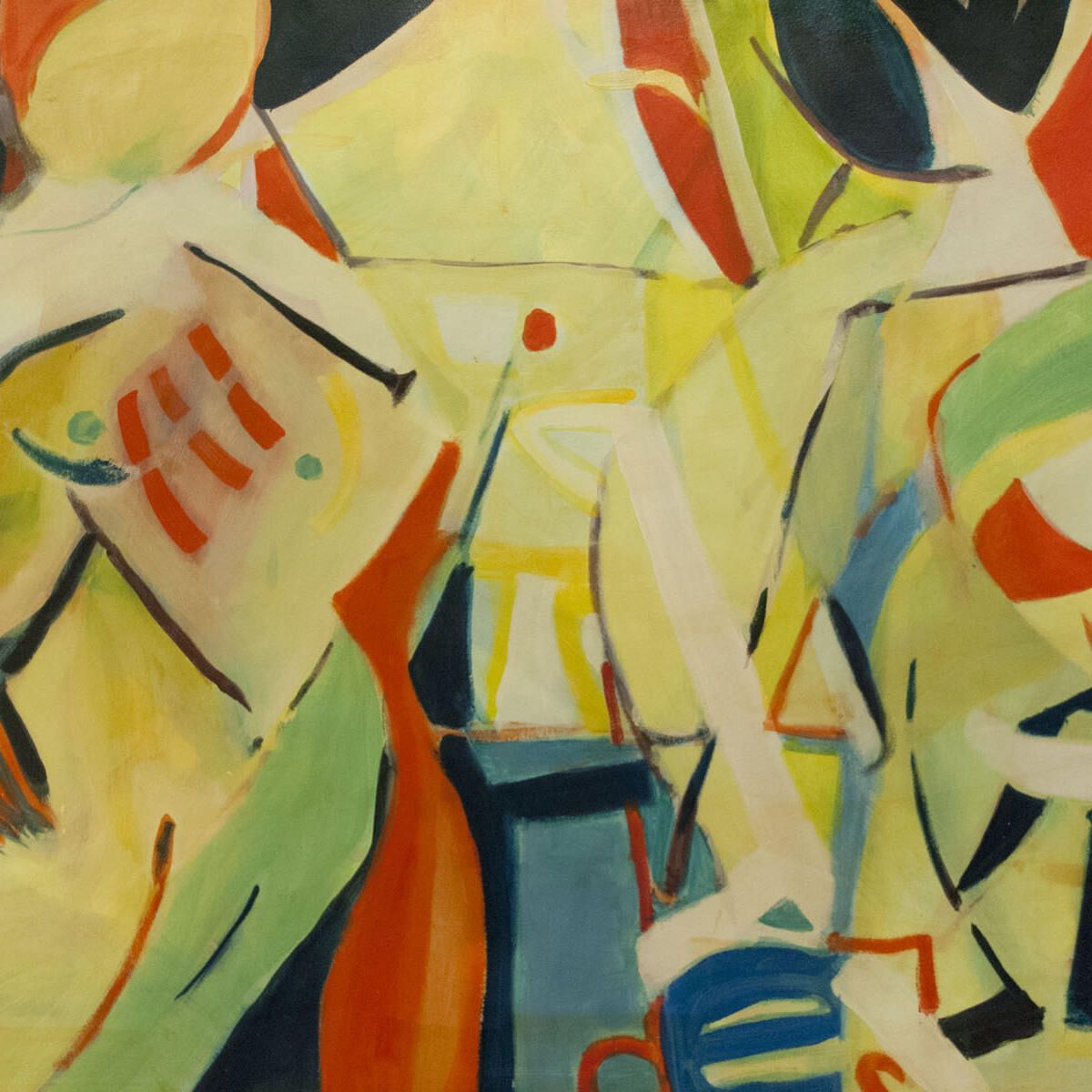 Creases, pencil marks, abrasions, smudges in borders. Image in good condition. Nude abstract/cubist figure. San Miguel series.Location