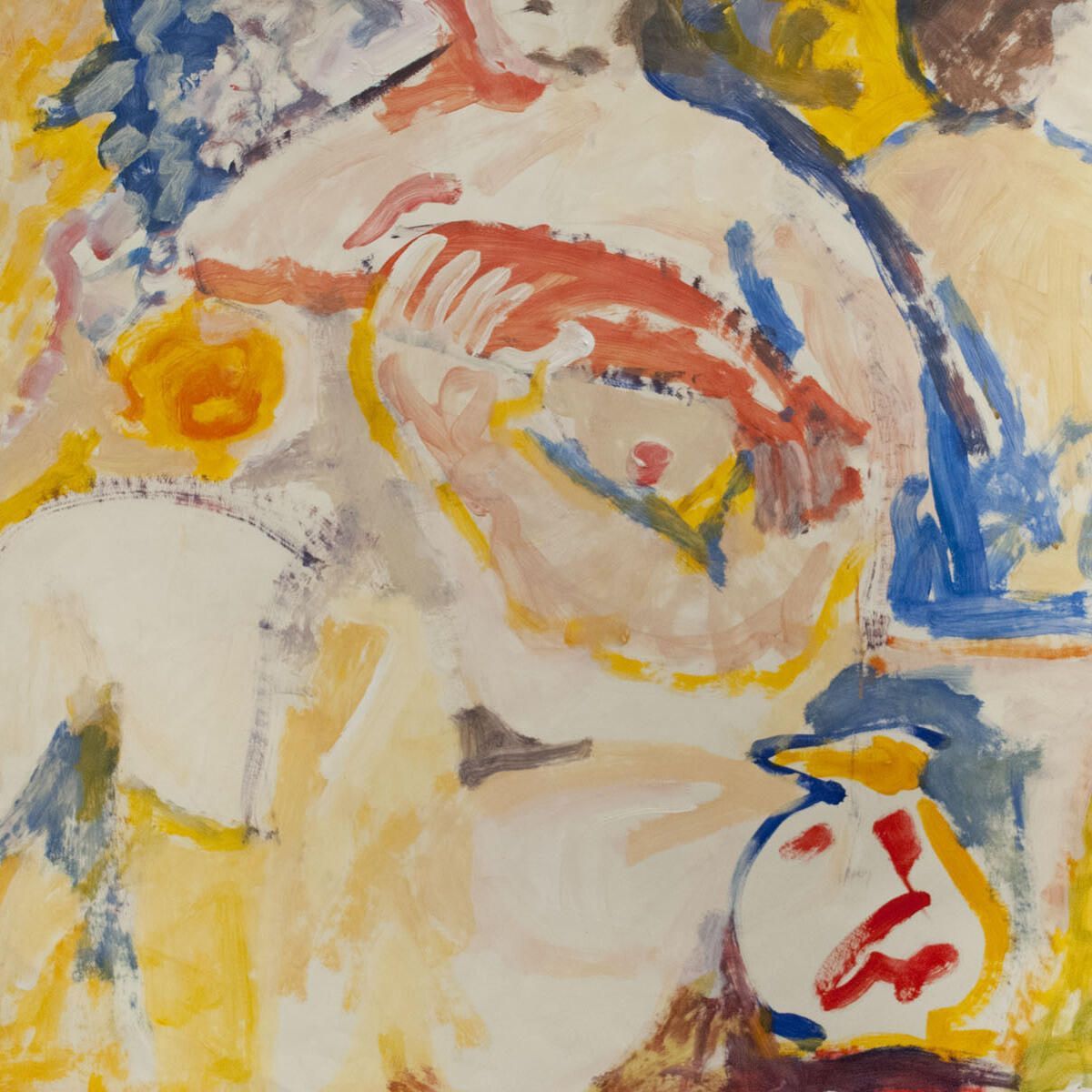 Smudges in borders, some entering image. Pinholes in corners of image. Abrasions and layers of paper removed throughout image. Figure Seated in front of a mirror.Location