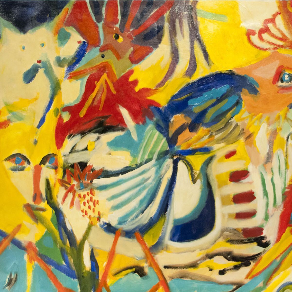 Tears in lower-left corner, pencil marks and creases in borders. Image in good condition. Stylized figure with animals. Montserrat Series.Dimensions