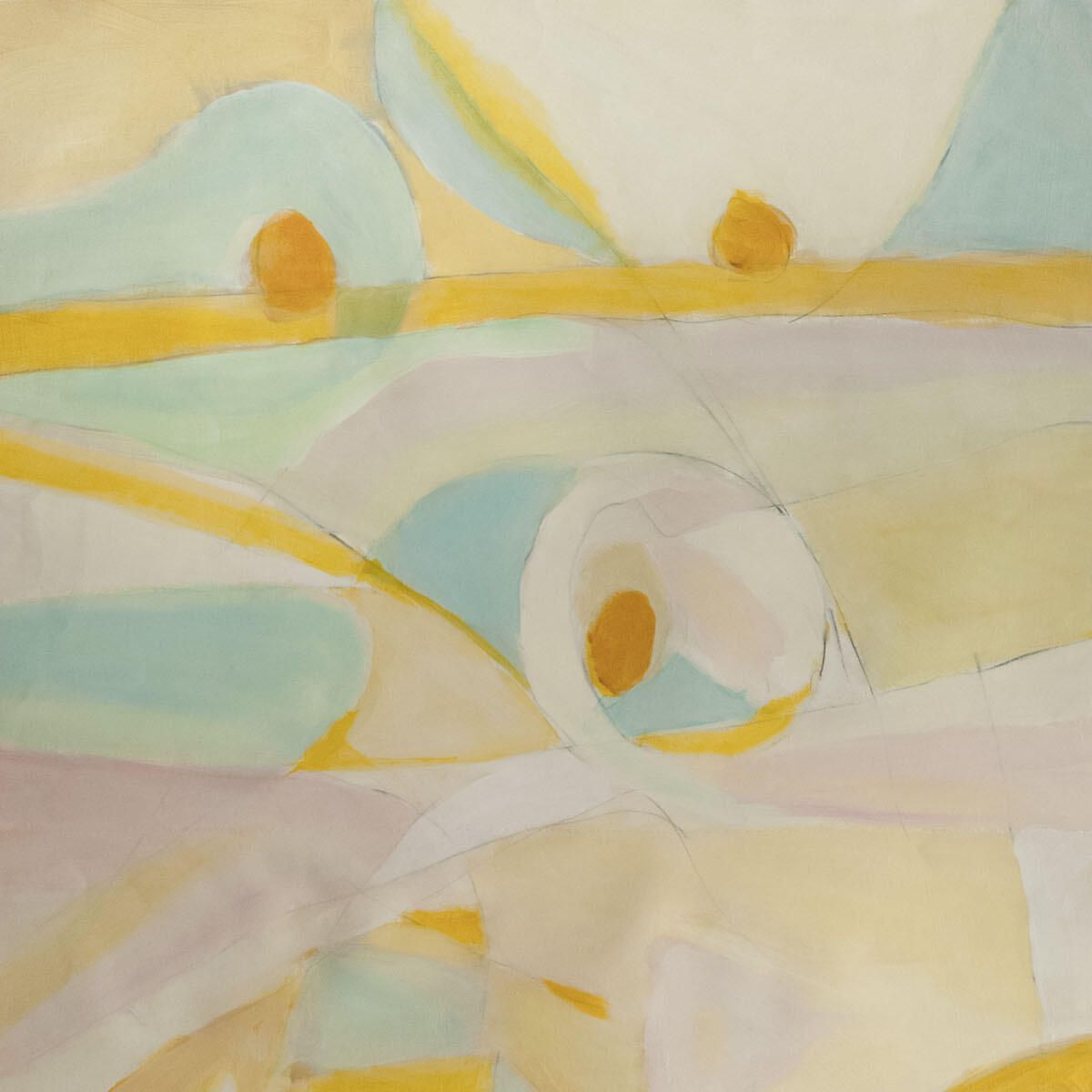 Two sheets adhered to form larger image area. Tear in upper border, gouge in bottom-right corner, crease in upper-left border. Tears and creases throughout left border. Soft-colored abstract portrait.Location