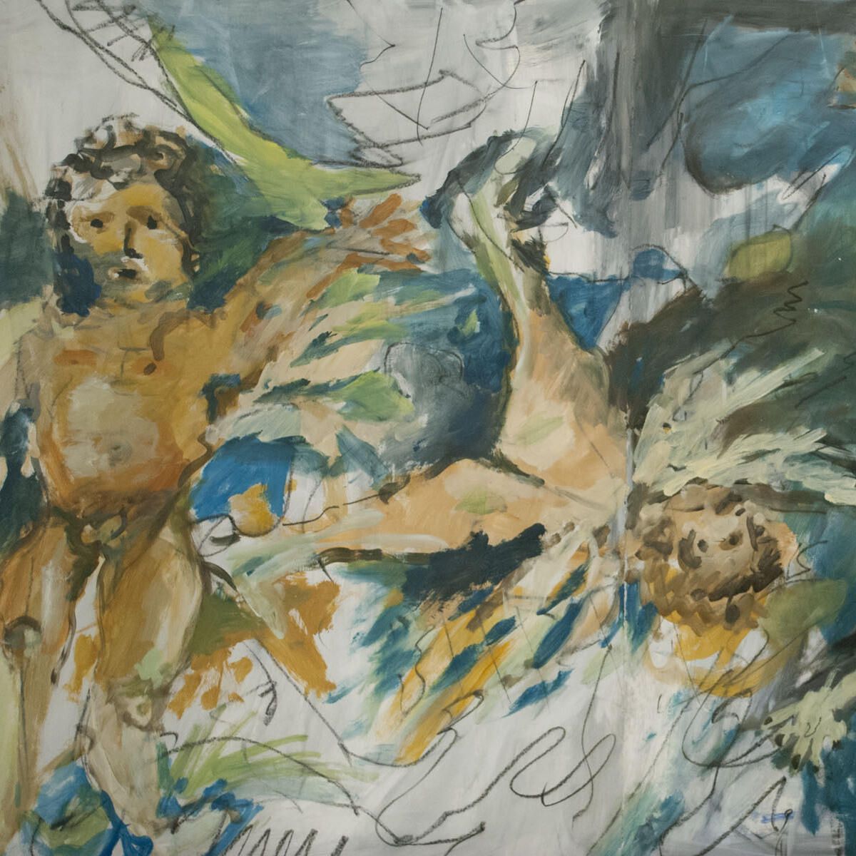 Two sheets adhered to form larger image area. Small points throughout image where paint has been lifted or chipped off. Three figures of cupids.Artwork Details