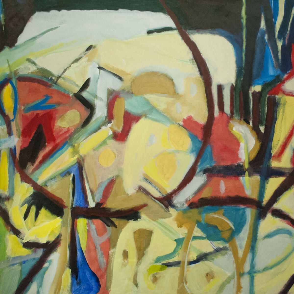 Significant tears at bottom repaired by artist with small pieces of paper glued to back of image with acrylic medium. Smudges, pencil marks in borders. Abstract composition. Lynn Street series.Dimensions