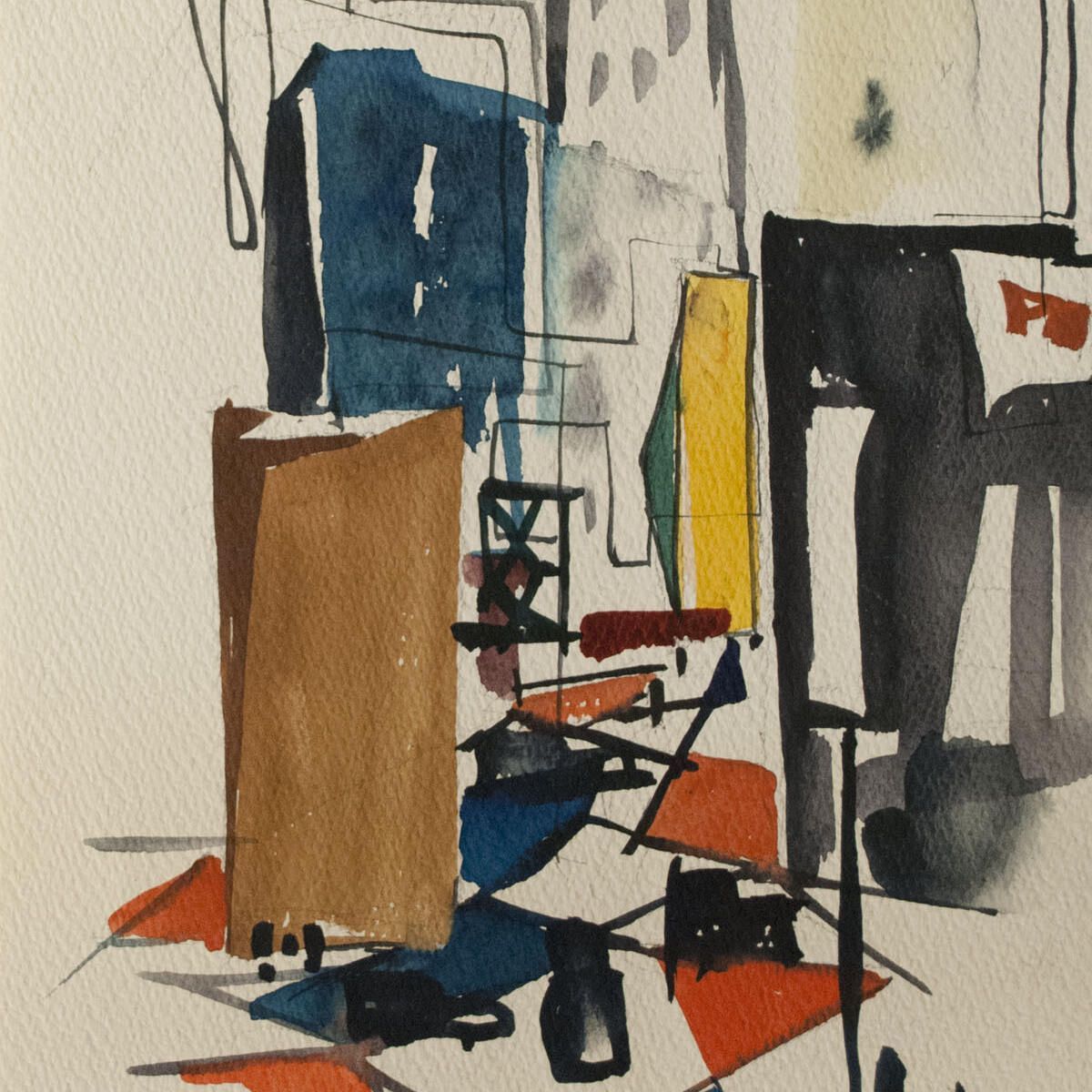 Cityscape. Poorly matted, image in good condition.Dimensions