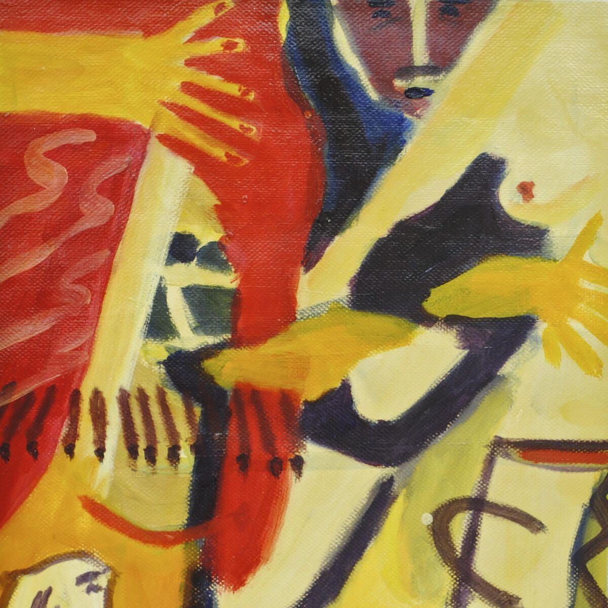 Abstract figures, still life. Columbus Ave. Series. In overall good condition. Human, red, yellow, blue, hands, reaching, hellDimensions