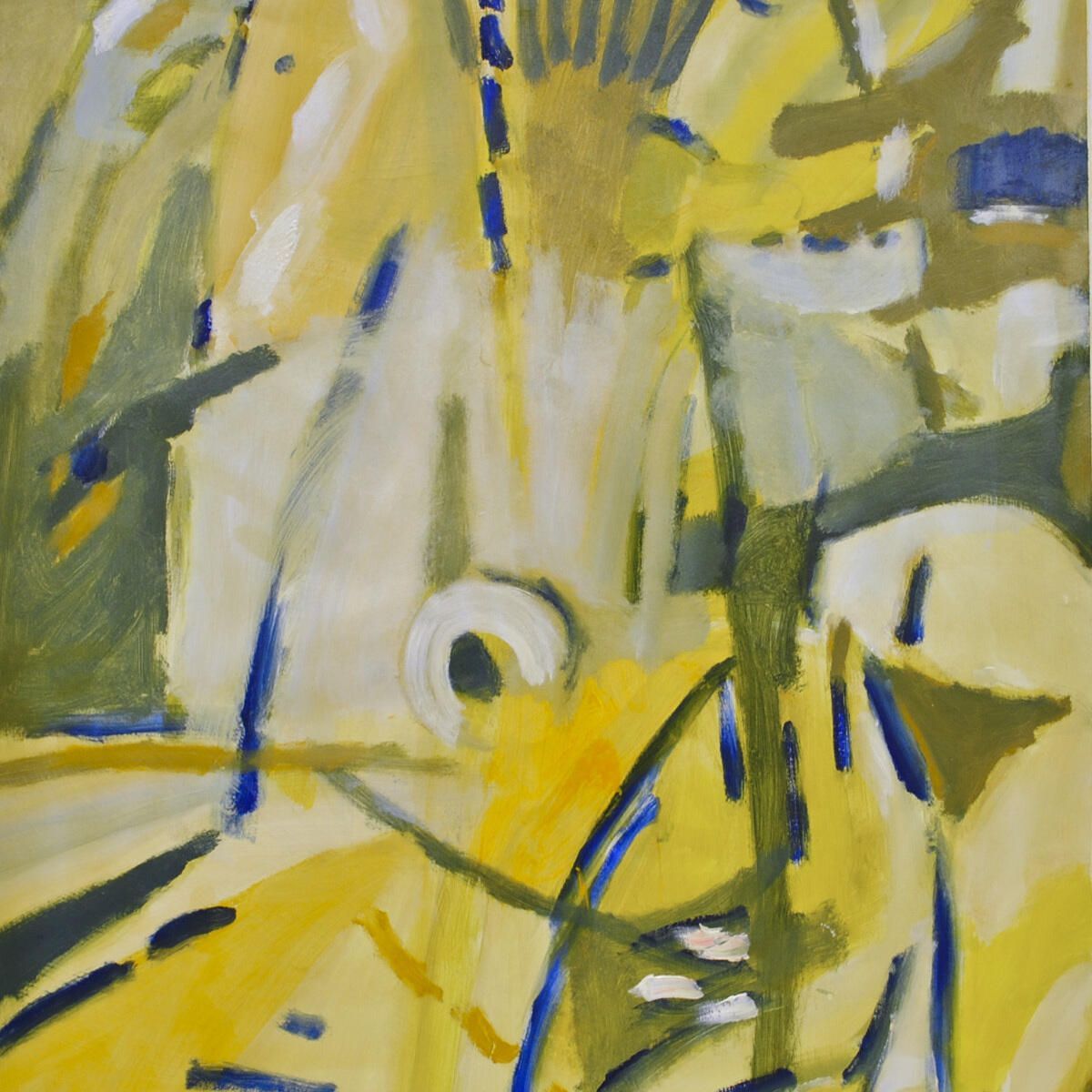Abstract, cubist composition. Landscape. In overall good condition. Yellow, white, blue, humanLocation