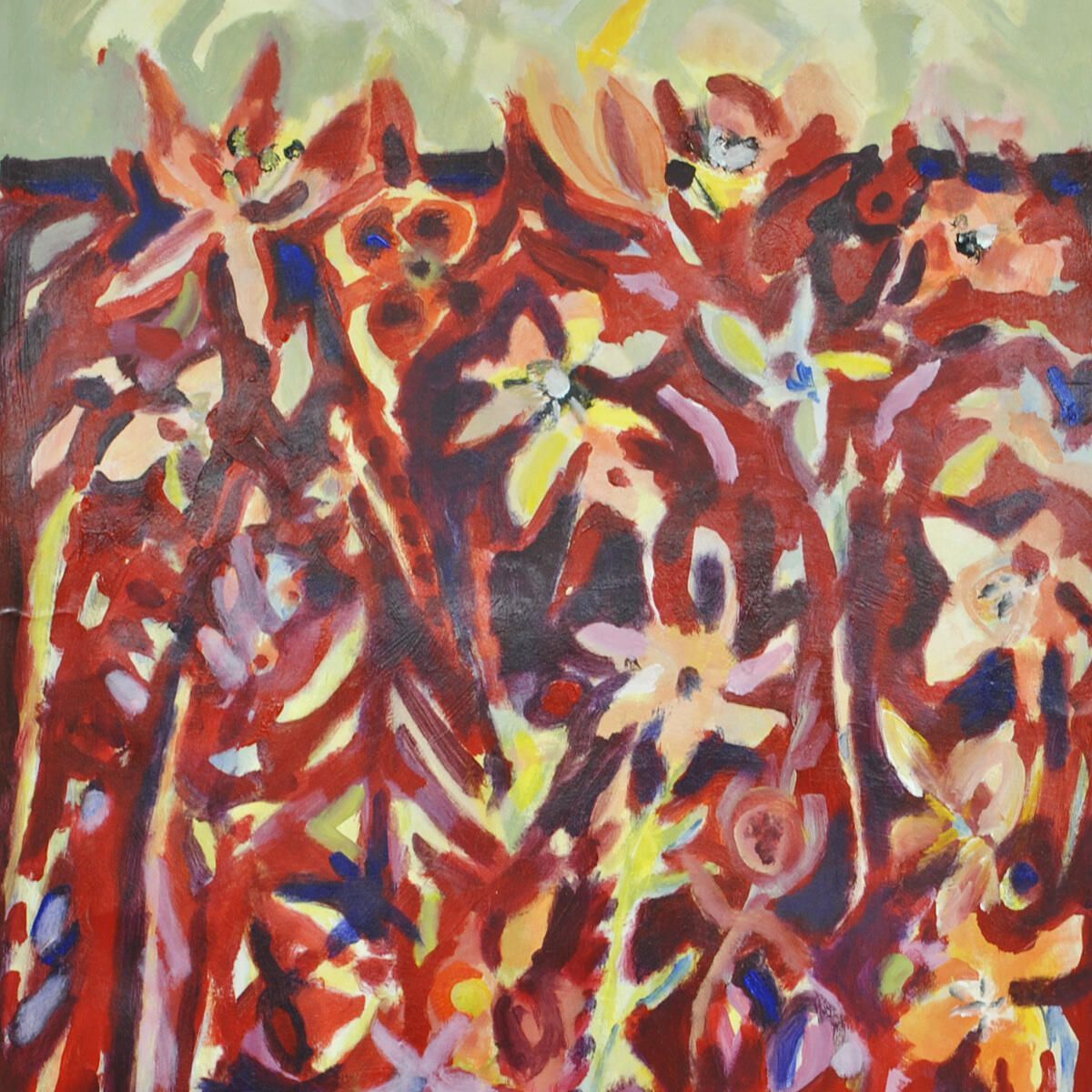 Still life/landscape. In overall good condition. Red, blue, yellow, flowers, plantsDimensions