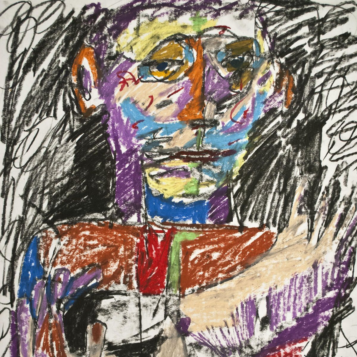 Abstract composition. Smudging throughout, in otherwise good condition. Human, blank stare, rainbowArtwork Details