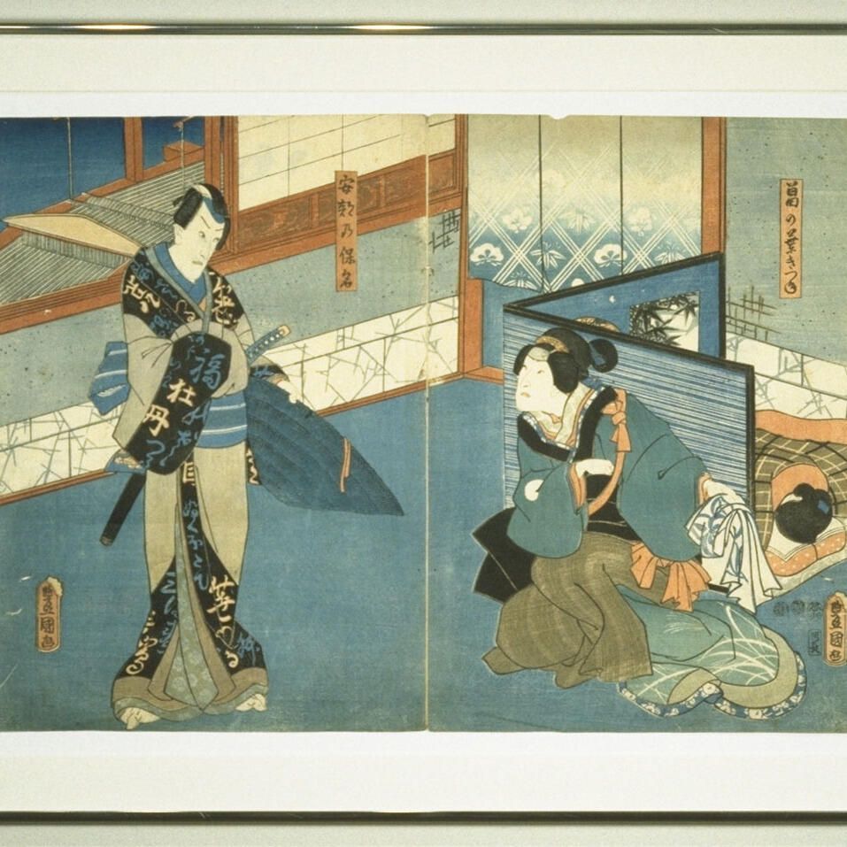 Ukiyo-e woodcut of the Edo period, Japan by Utagawa Kunisada. Kunisada was the most prolific and admired of printmakers during this period. Known by many names, including Utagawa Kuniyoshi, and Utagawa Toyokuni III.
