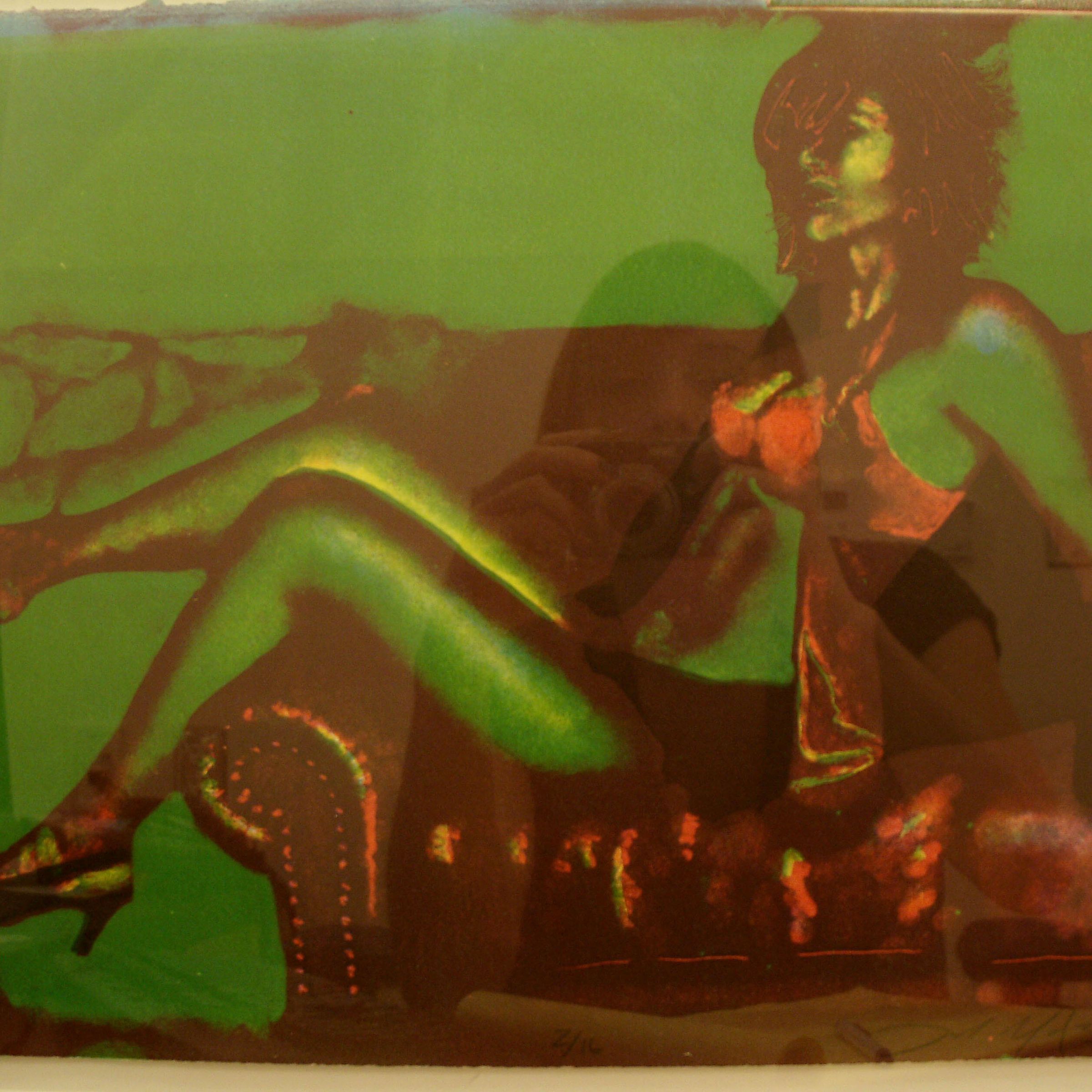 Retake, woman, human, couch, red, green, black, sitting, fashion