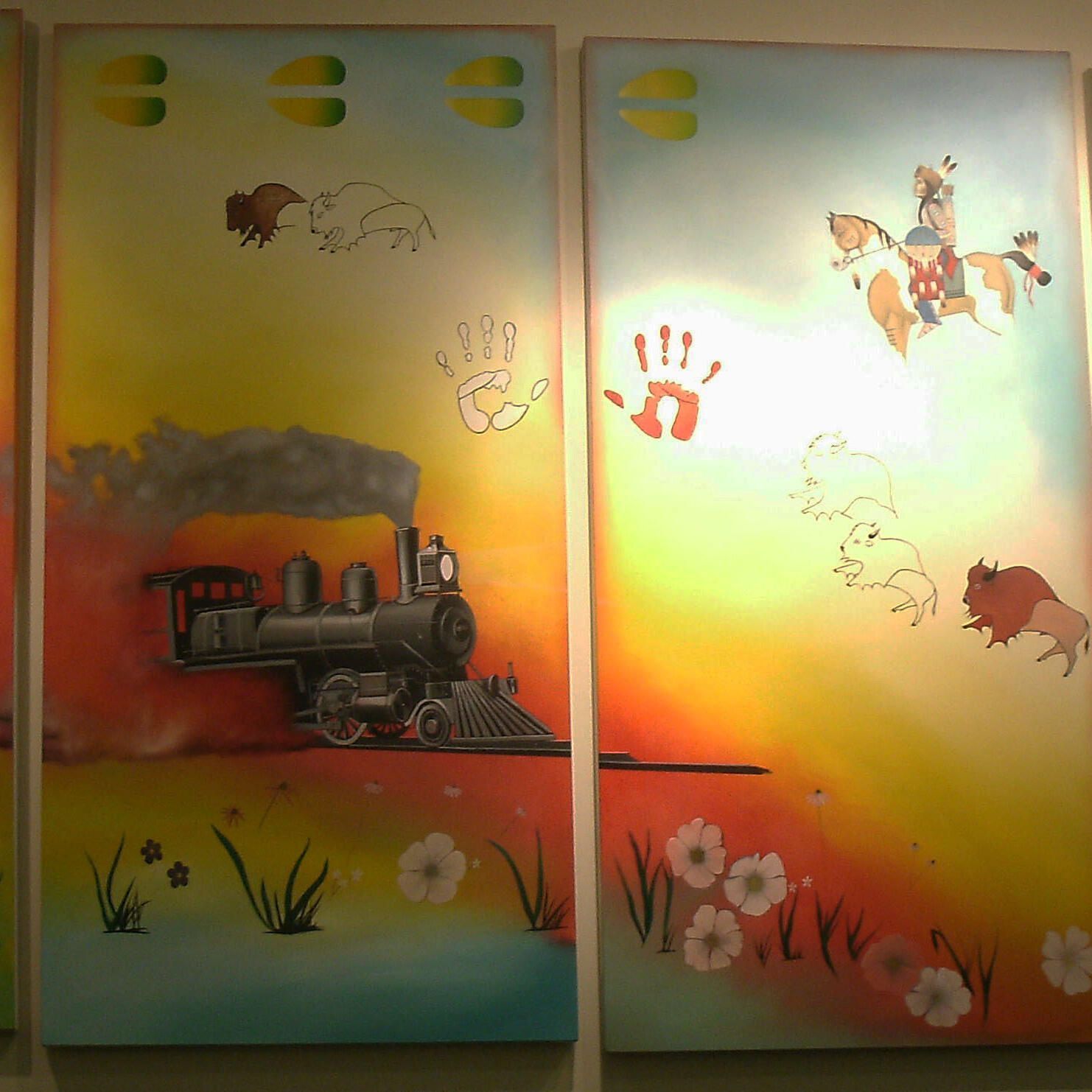 Retake, bison, train, Indigenous man, map, flowers, rainbowCollection