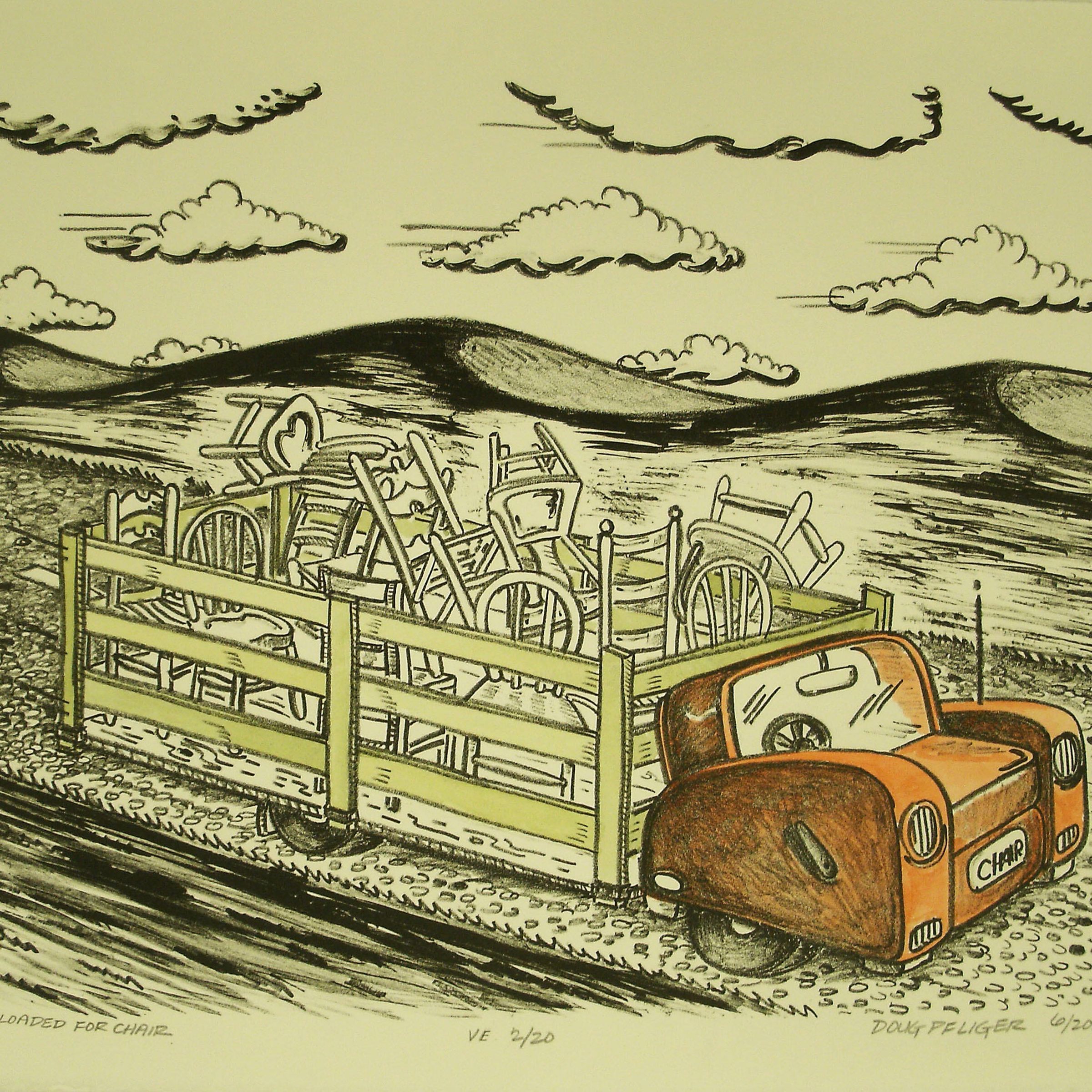 vehicle, truck, chairs, black and white and red all over, machineCollection