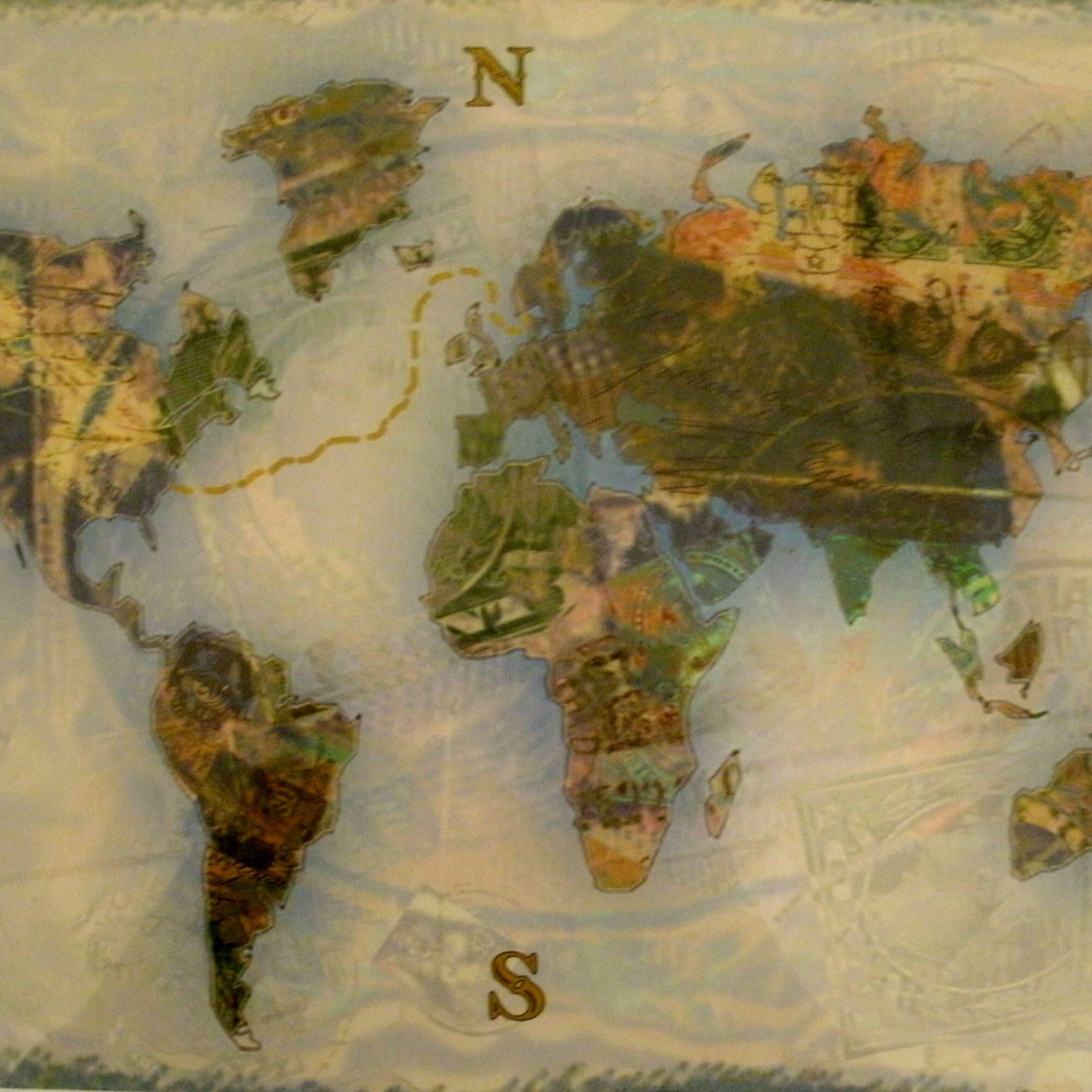 Map, world map, green, blue, orangeMade/Created