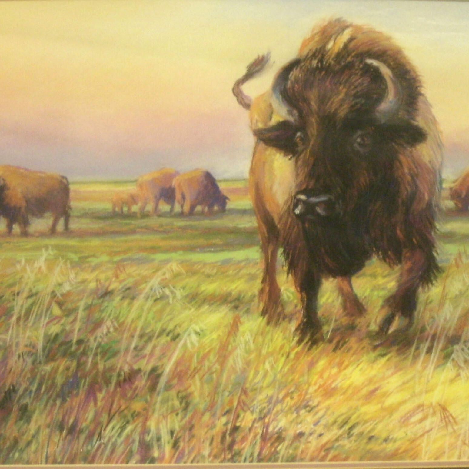 Bison, field, yellow, purple, brownCollection