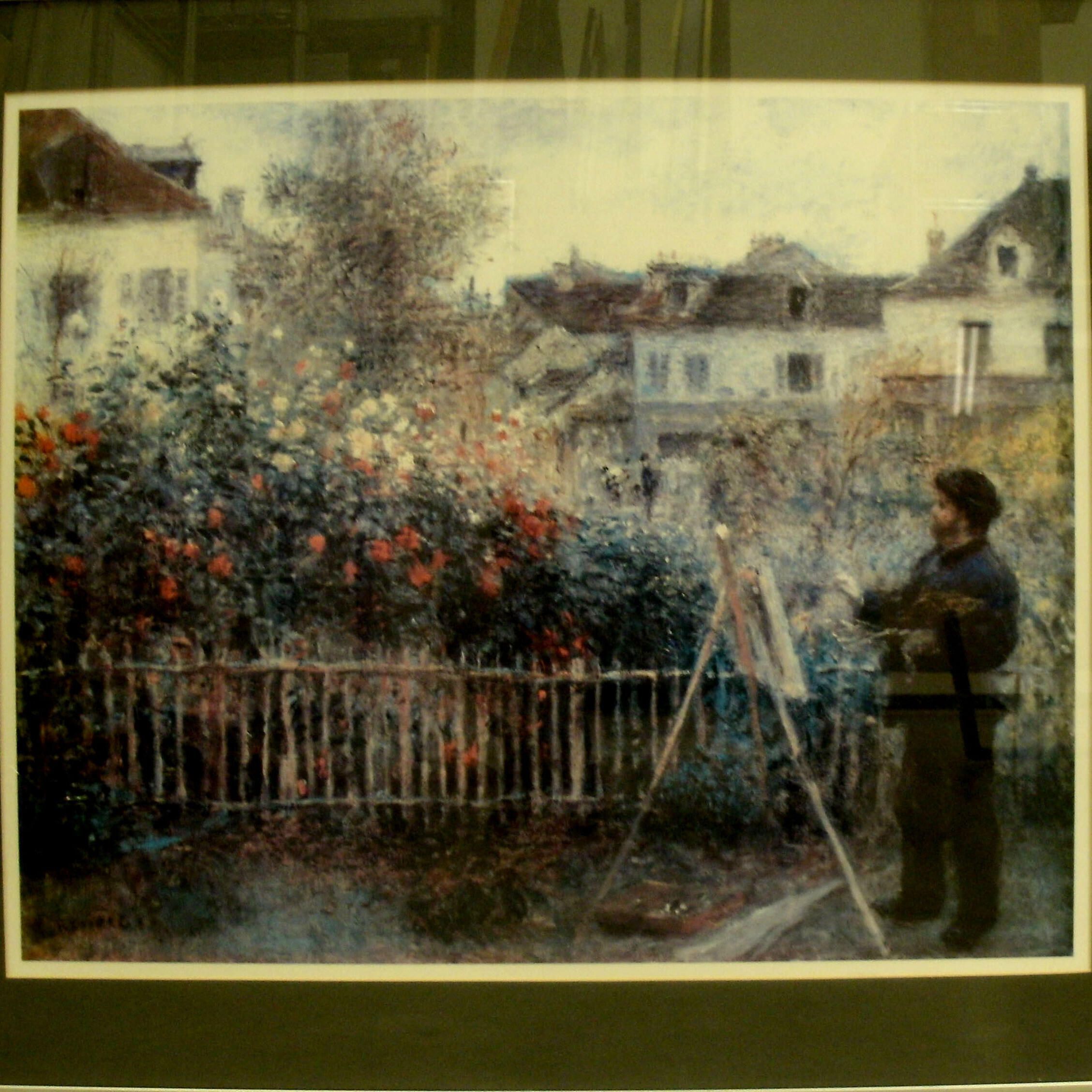 retake, human, Monet, standing, painting, plants, flowers, houses, cityCollection