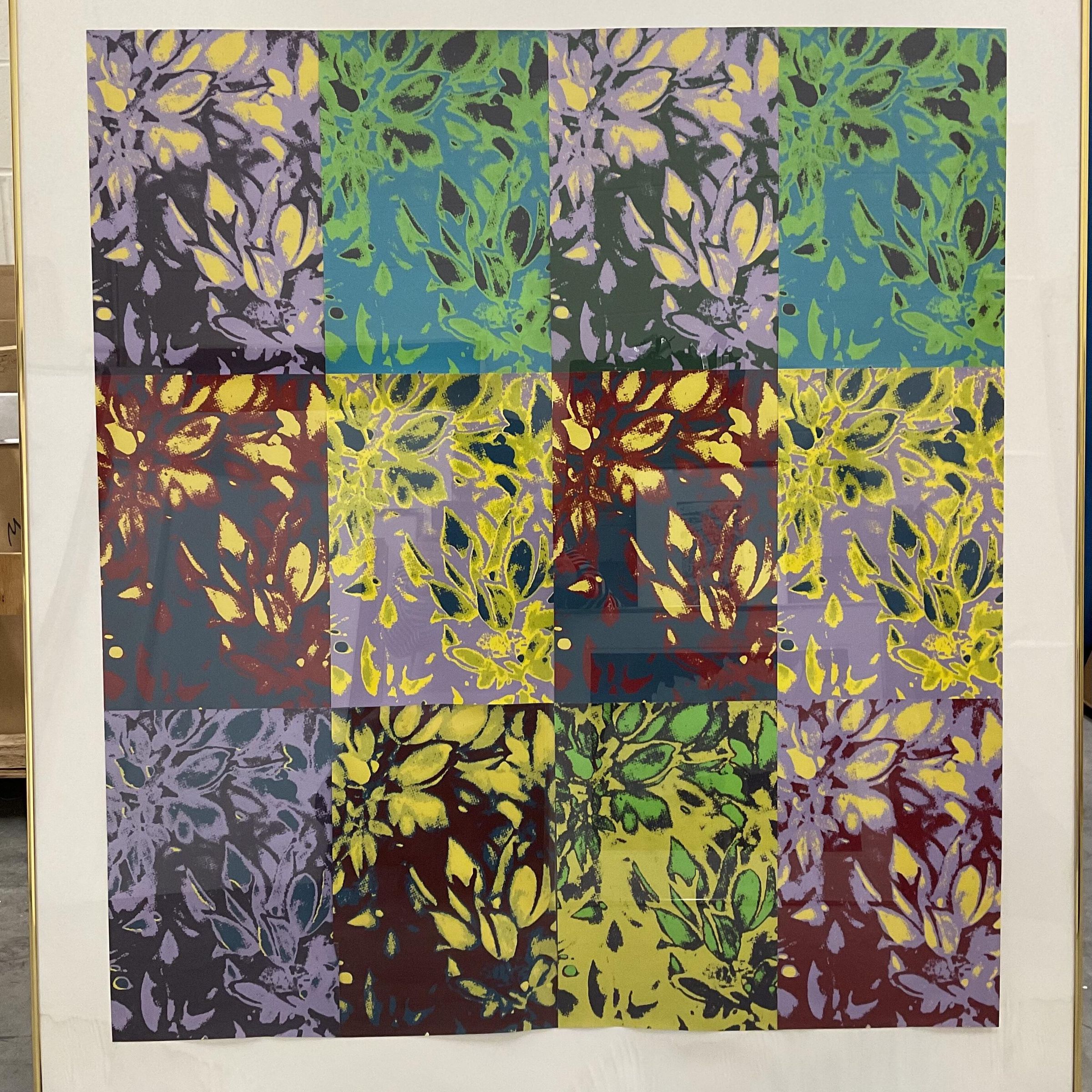 image is corrupted; piece has varied color with lots of yellow, red, purple, blue, and greenArtwork Details